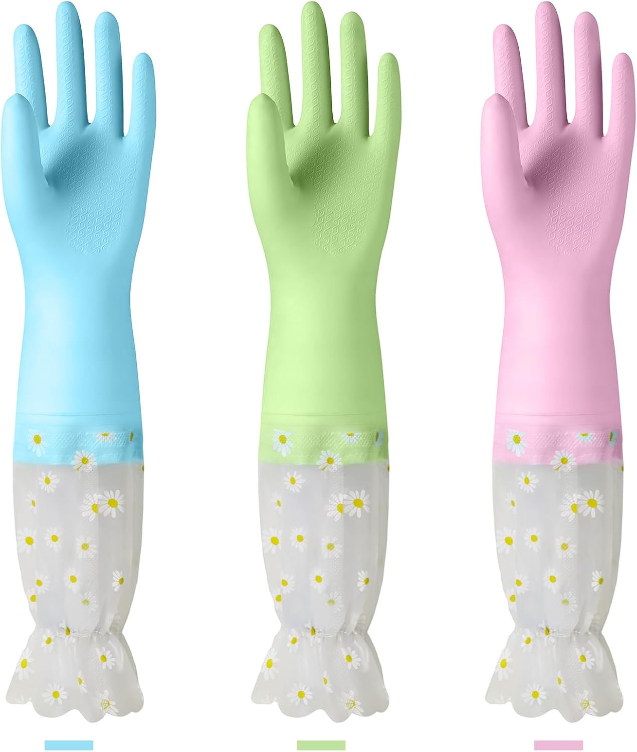 KAQ Dishwashing Cleaning Gloves 3 Pairs-Reusable Cotton Liner Rubber Gloves Long cuff 19.5″ Non-Slip Kitchen Gardening Gloves