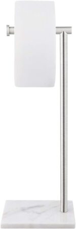 Natural Marble Base – Unique & Long-lasting: Heavy weighted natural marble base can keep this toilet roll stand sturdy from tipping. Notice: The base is made of natural marble featuring in a wide variety of colors and patterns (The unique feature of each marble base gives it a beautiful style and appealing taste).