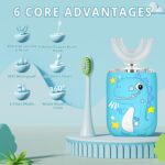 360 Degree Cleaning: Our kids toothbrush according to the child’s oral structure, the kids electric toothbrush is designed with U shaped brush head, which can clean your child’s teeth 360° in all directions, without missing any small deciduous teeth