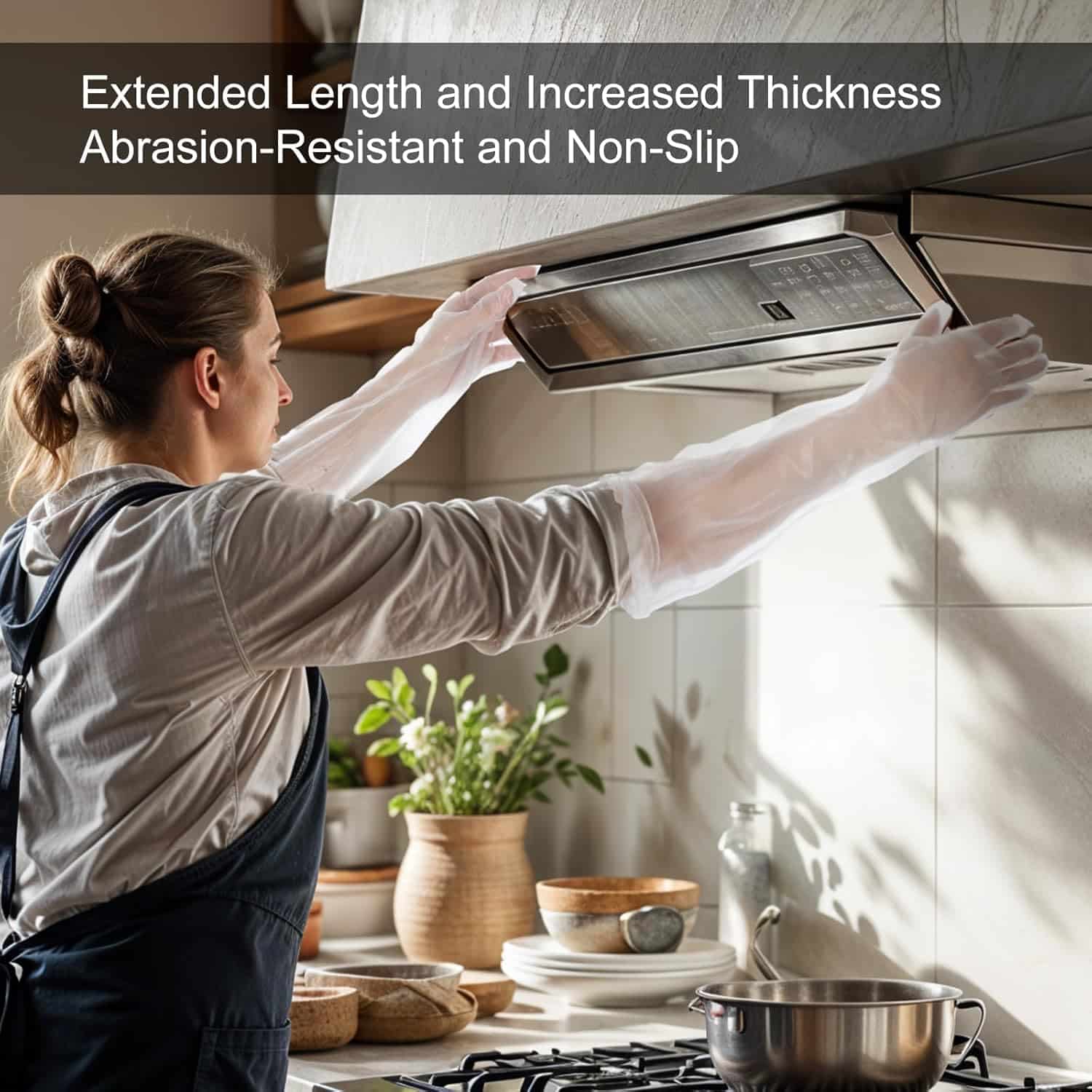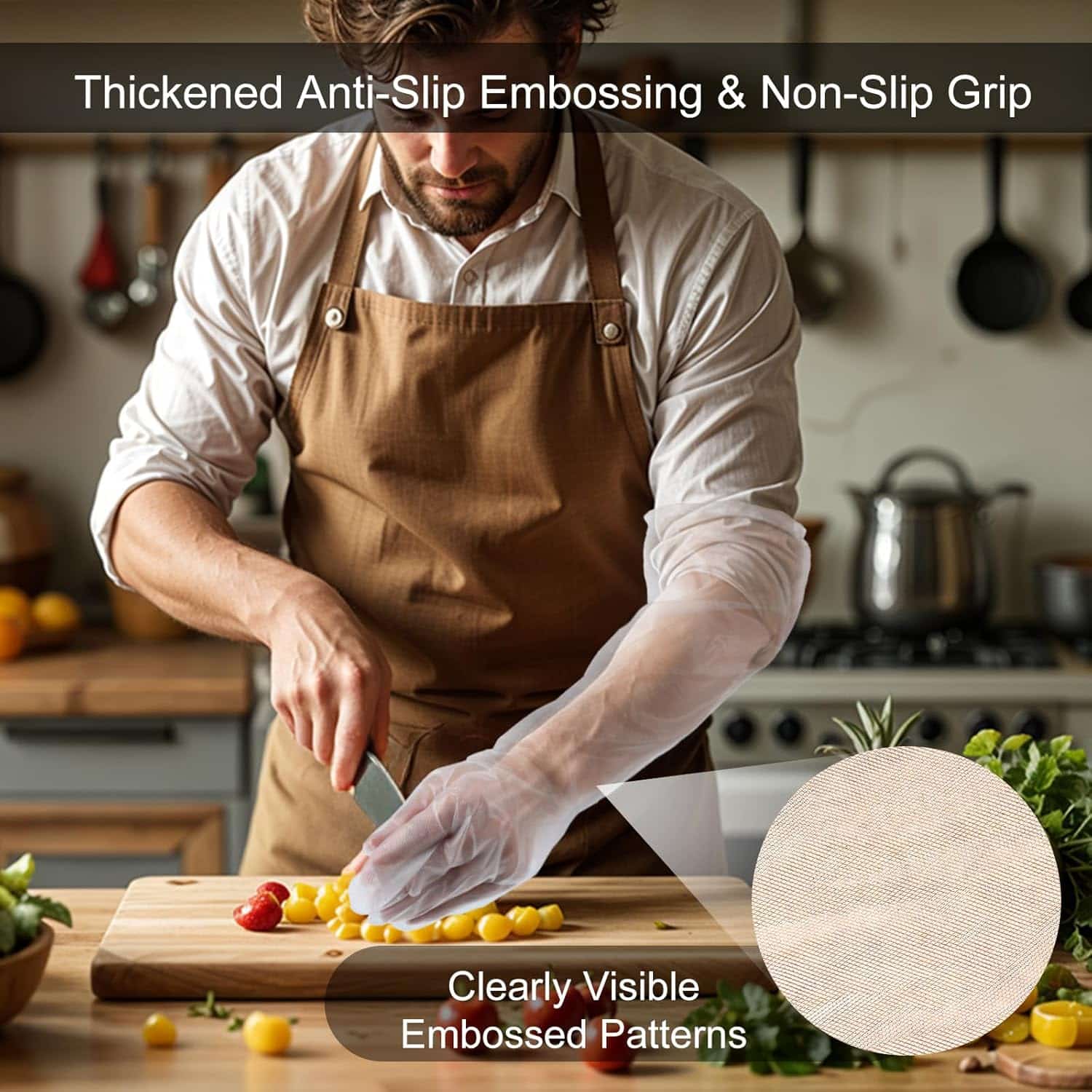 Function: These long gloves can be used for cleaning, gardening, food service, and veterinary procedures
