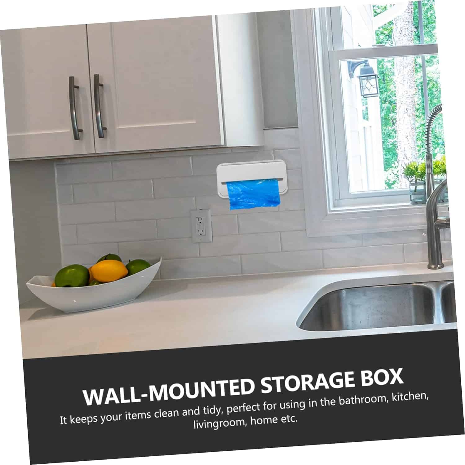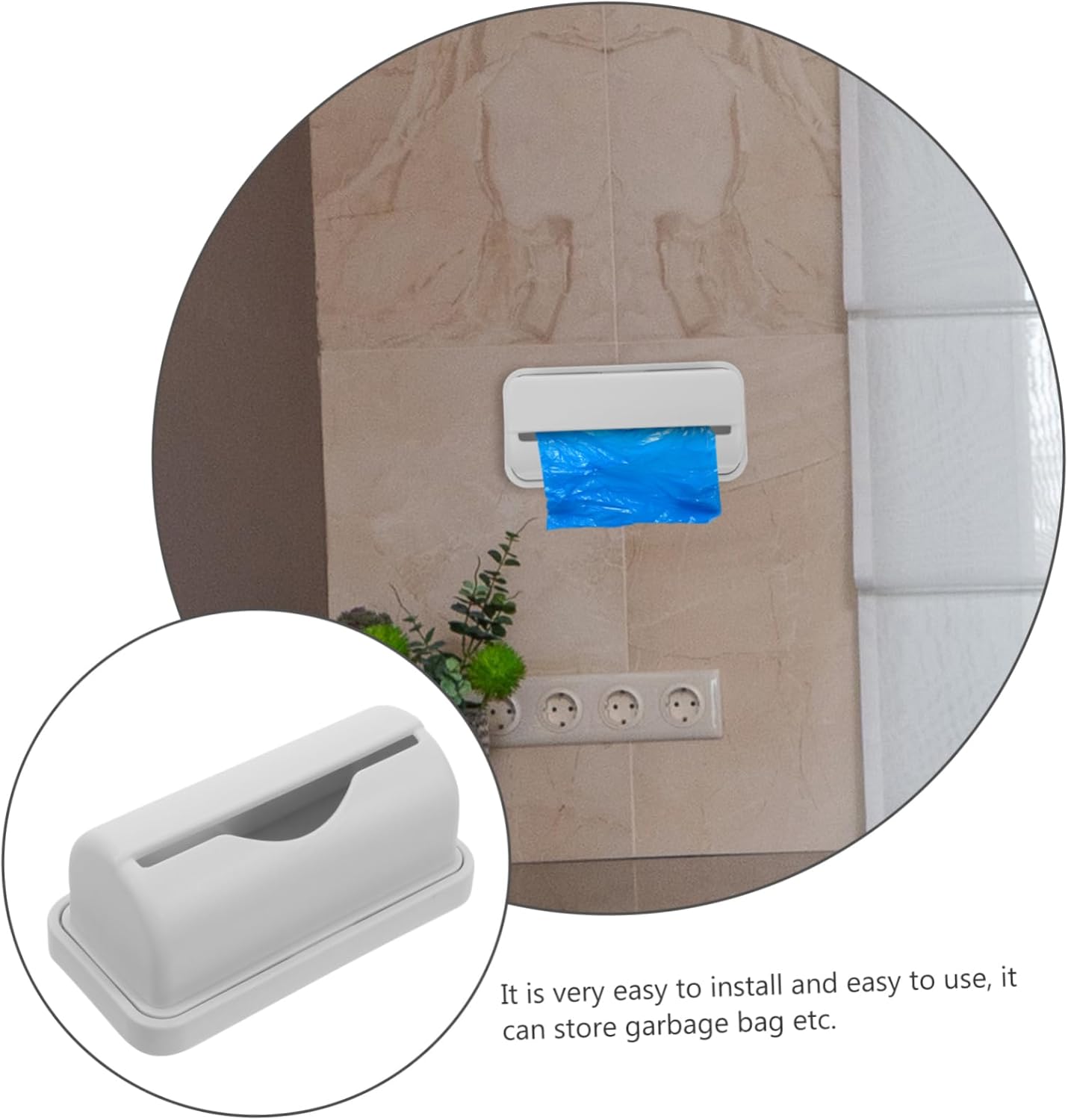 Trash Bag Container it keeps your items clean and tidy, for using in the bathroom, kitchen, livingroom, home etc.Trash Bag case It is very easy to install and easy to use, it can store garbage bag etc.Trash Bag Dispenser The box is made of plastic material, practical and safe