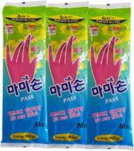 Mamison Quality Kitchen Rubber Gloves M Size Pack of (3 Pairs) Household and Kitchen, Reusable Non-Slip Cleaning, Working and Washing / Korean Kitchen Supply Brand