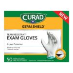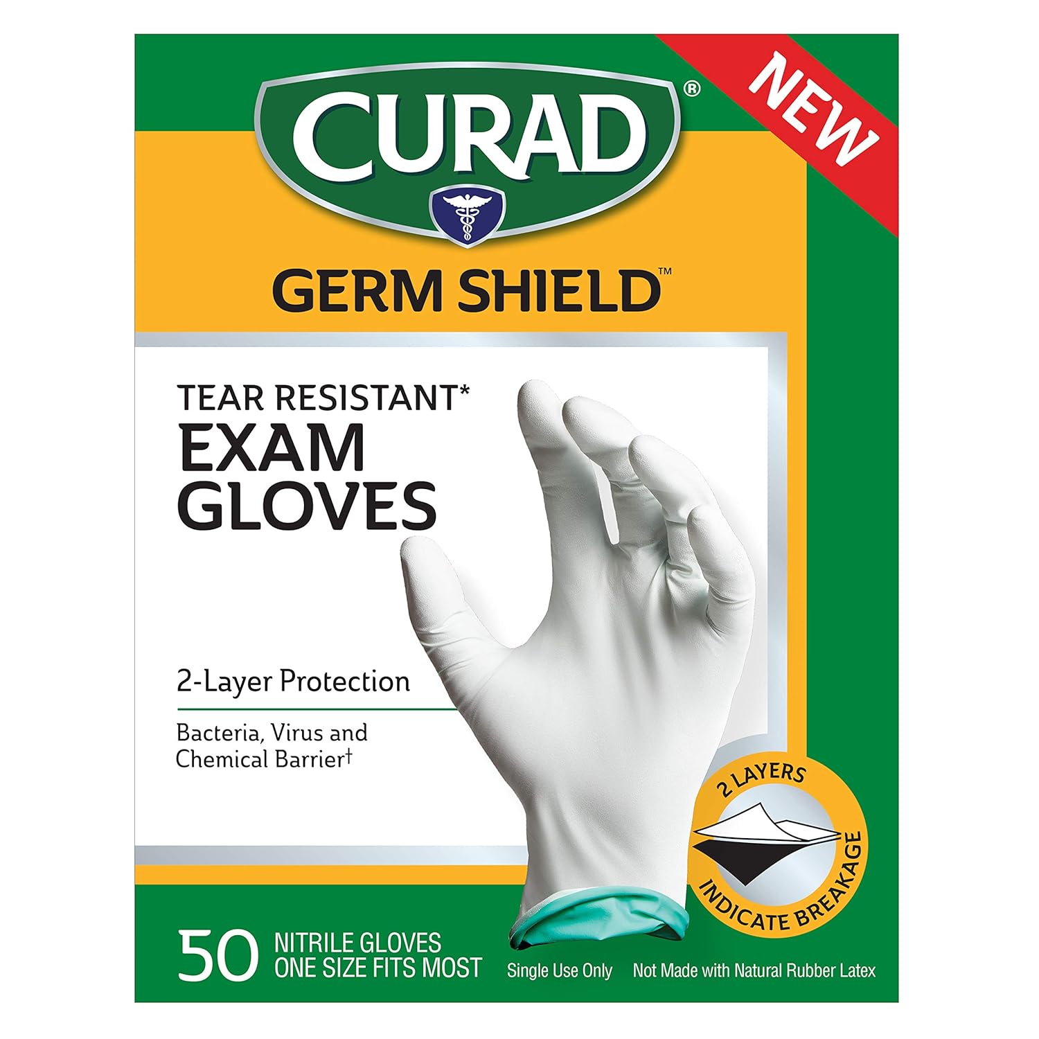 Medline CURAD Shield Nitrile Exam Gloves, Disposable Gloves are Tear Resistant, One Size Fits Most (50 Count), Can be used as medical gloves, cleaning gloves, or for home improvement tasks
