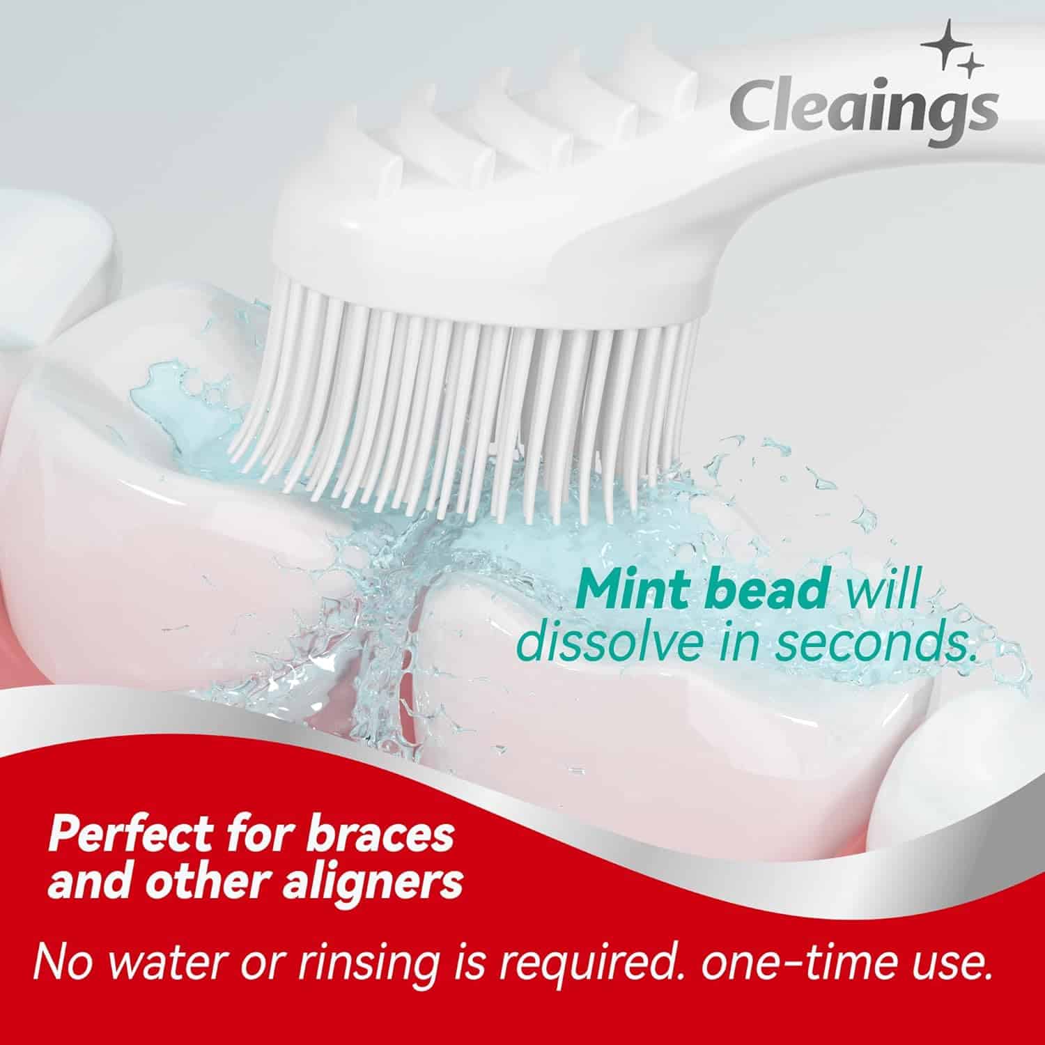 cleaings Mini toothbrushes are designed for single use and can easily be taken anywhere! Each mini toothbrush contains a refreshing bead that delivers fresh, long-lasting toothpaste to help clean teeth without water. The toothpaste liquid is made of food grade and can be swallowed directly. The soft pick on the end also helps clean between teeth. Keep them in your pocket, purse, briefcase, desk drawer, gym bag and car.