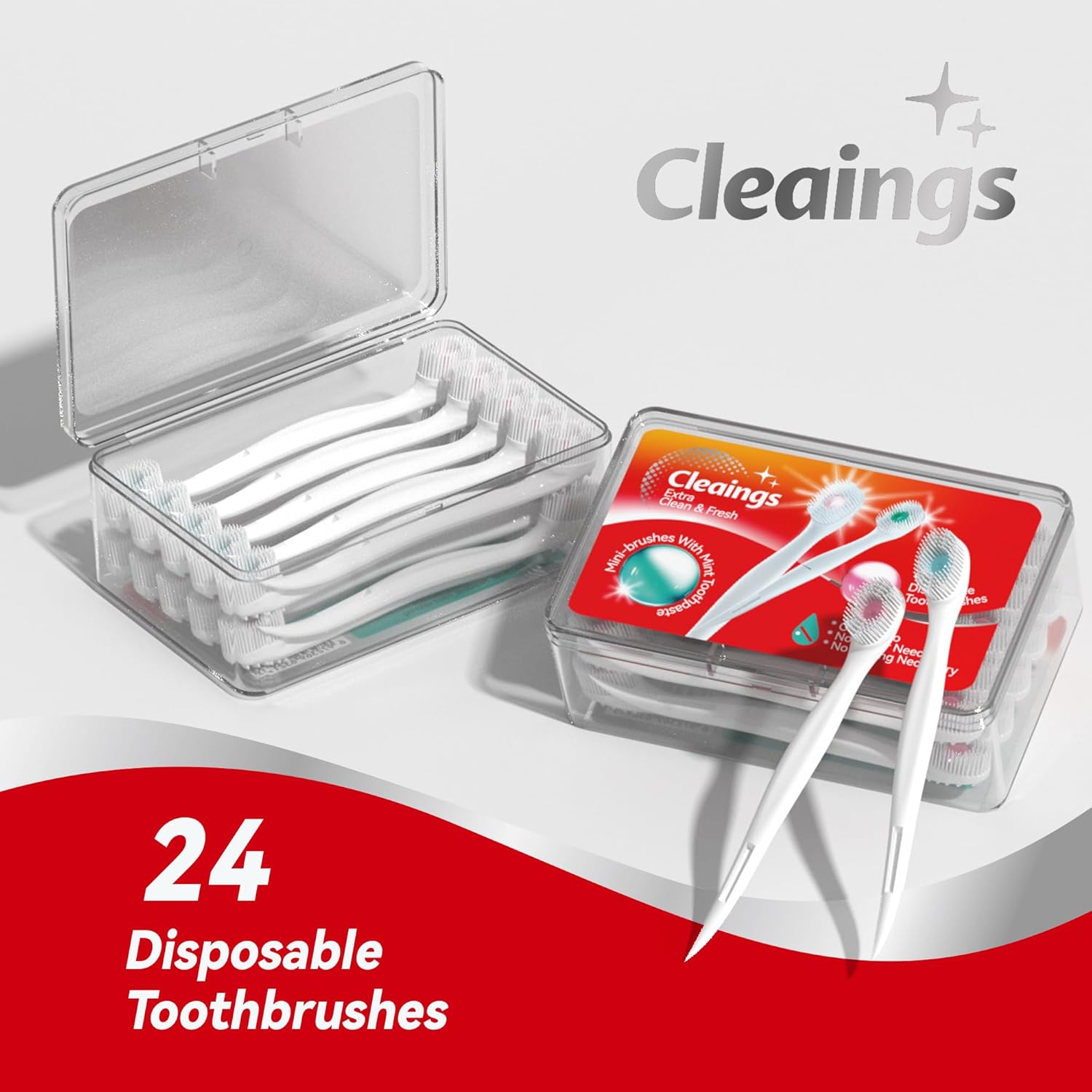 Mini Brushes-Disposable Toothbrushes with Cleaning Beads Toothpaste and Pick for Work or Travel, 24 Count-Mint Flavor(Pack of 5)