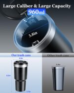 【 – Large Capacity – 】 With a large capacity of 960ml and an opening diameter of 3.8 inches, The mini trash can for car can easily accommodate snack packages, paper towels, or other small wastes generated during daily driving, reducing the trouble of frequent cleanup and making driving more focused.