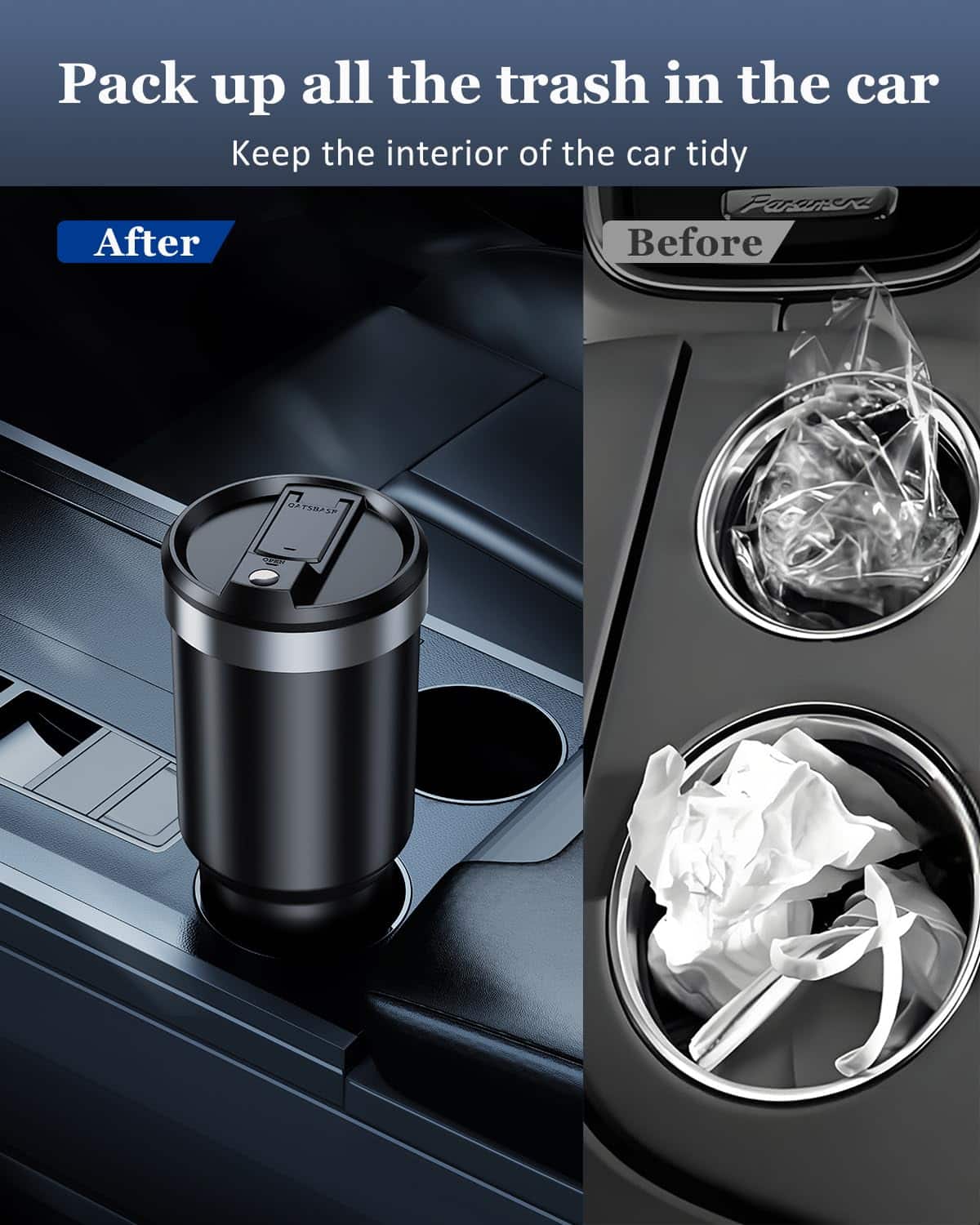 【 – Innovative Phone Holder – 】 The lid of the trash can is cleverly integrated with a cell phone holder function, just one click, you can firmly support your cell phone, whether it is a navigation guide or watching videos, can add a convenient and fun for your journey, so that the journey is no longer monotonous.