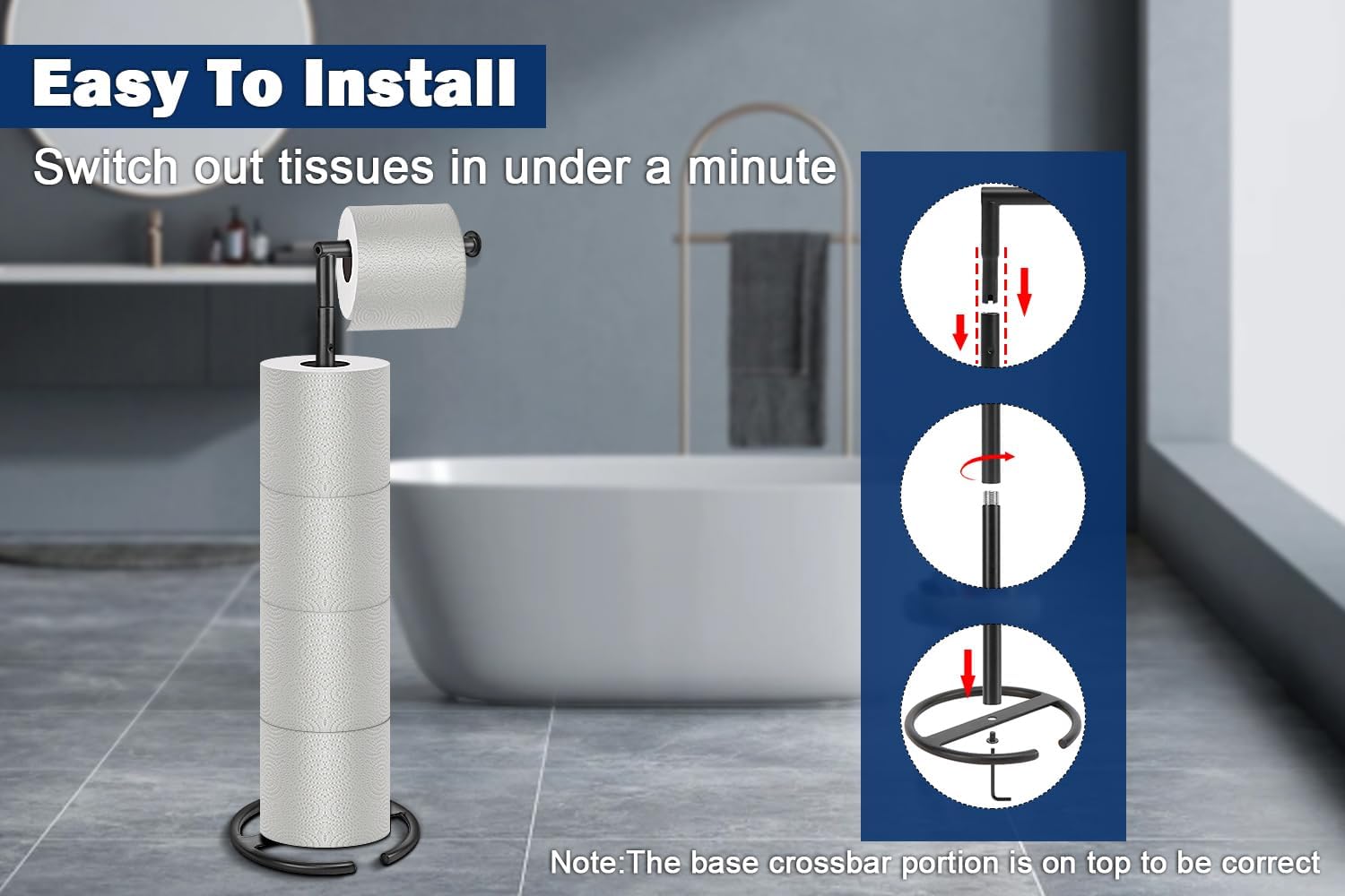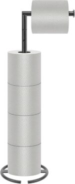 NearMoon Bath Toilet Paper Holder Stand- Modern Tissue Roll Holder Standing with Balanced Base, Rustproof Toilet Roll Holder for Bathroom/Kitchen Countertop (Matte Black, Metal Base)