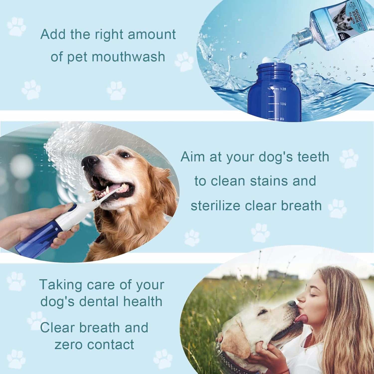 【Dental Cleaning Solution】Our kit includes a dog finger toothbrush and 2 nozzles, offering an all-round cleaning solution. Ideal for dog owners seeking a dental health solution. Use with Dog Toothpaste and Dog Mouthwash, keep your pet’s breath fresh and banish bad breath