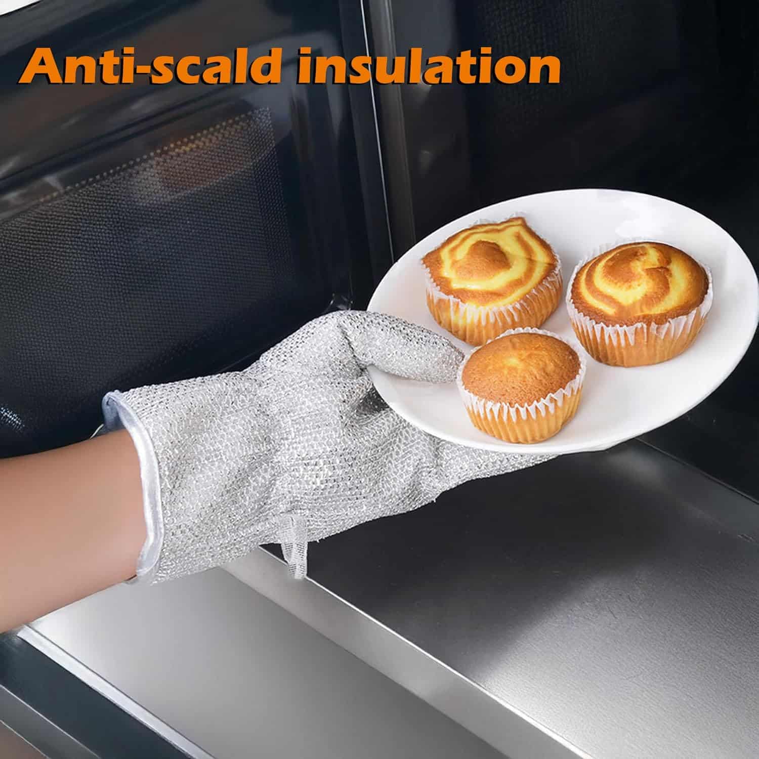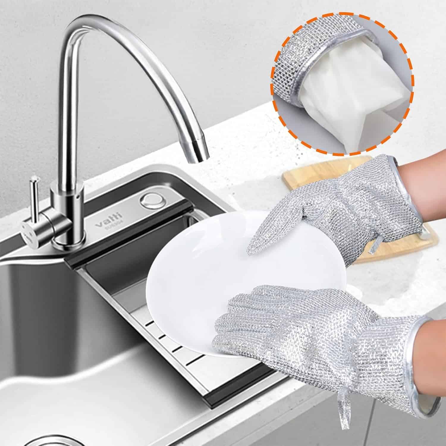 Non-scratch Wire Dishwashing Gloves with Scrubber. Steel Wool Dishwashing Rag. Waterproof Anti-Frozen & Hot & Oil