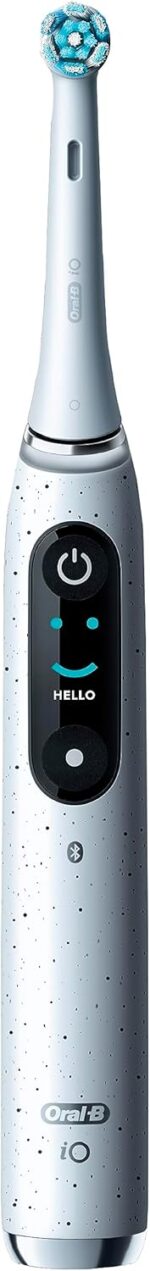 Oral-B iO Series 10 Rechargeable Electric Toothbrush with Visible Pressure Sensor to Protect Gums, 2 Min Timer, 7 Cleaning Settings, 4 Replacement Toothbrush Heads, and Charging Travel Case, White