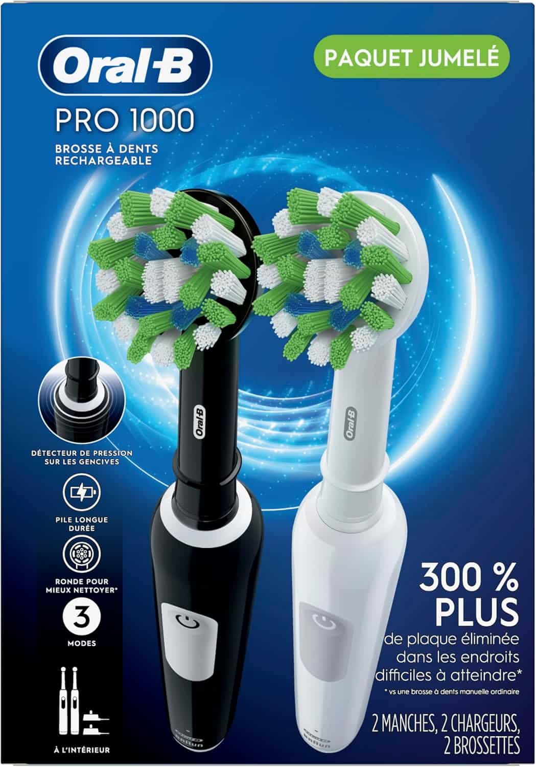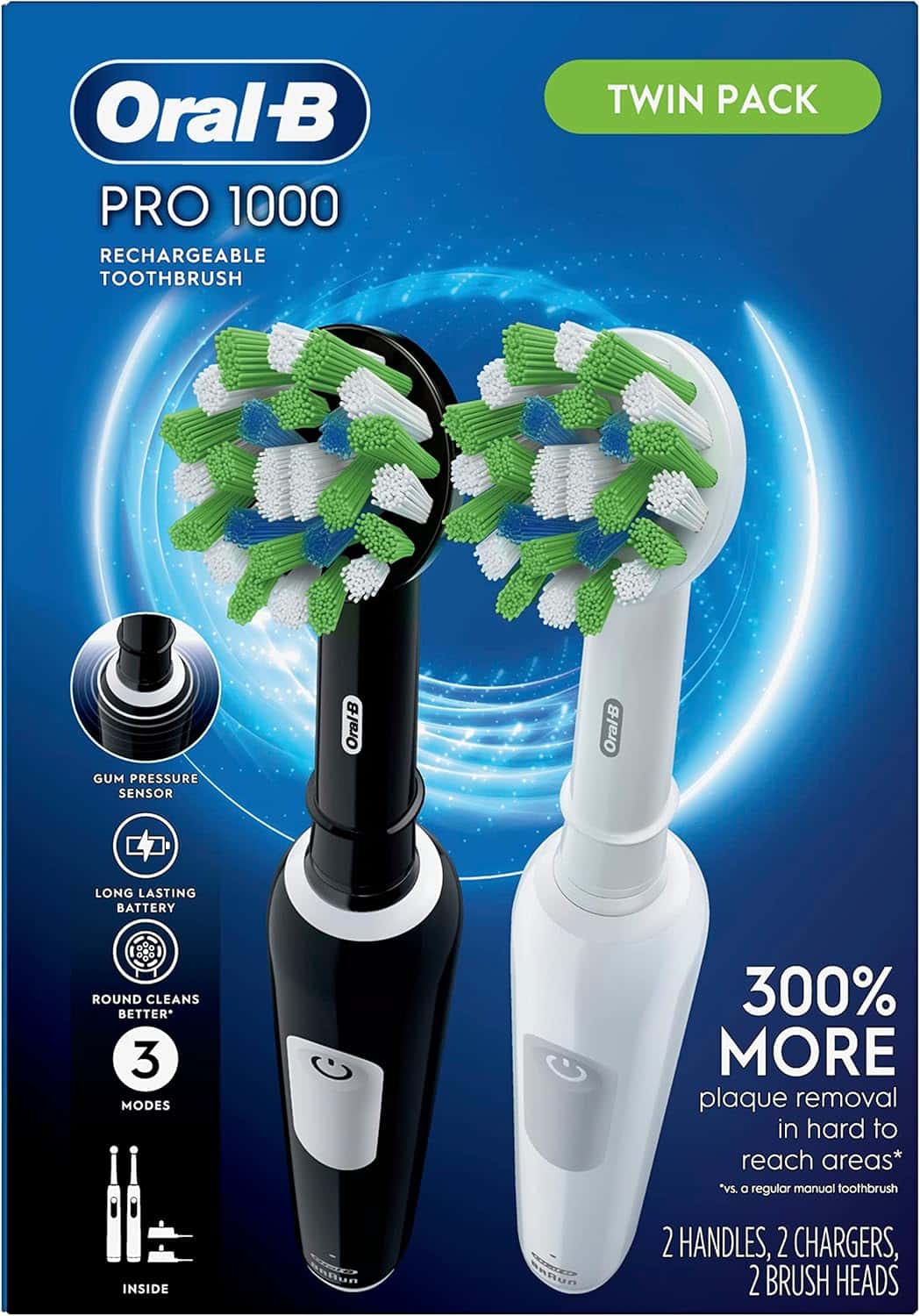 Oral-B Pro 1000 CrossAction Electric Toothbrush, Black and White, 2 Count