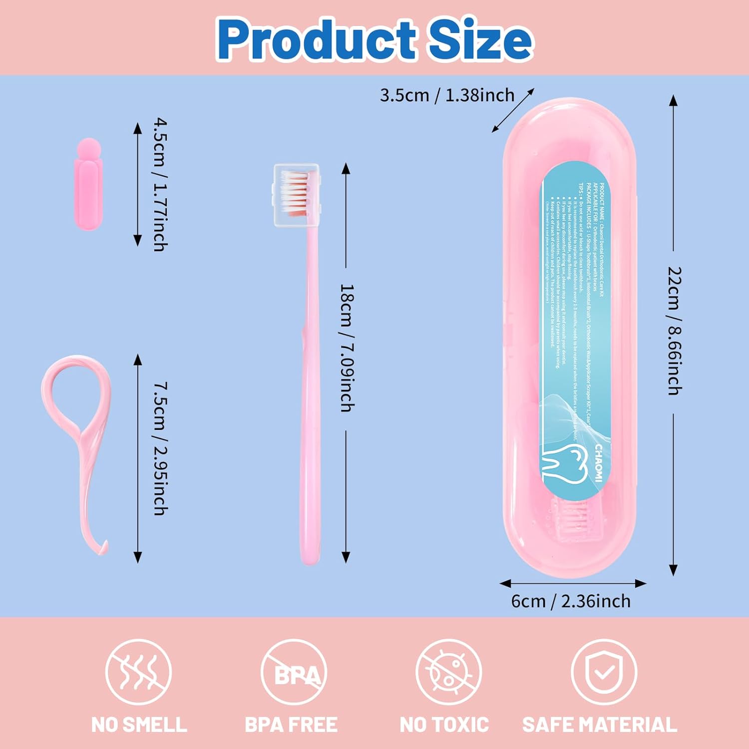 All-in-One Orthodontic Care Kit: This professional dental set is specially designed for Invisalign users and includes everything you need for daily aligner care: 1× V-shape toothbrush with dual bristles for thorough cleaning, 2× durable chewies (blueberry and peach flavored) to help align your trays, 1× aligner removal tool for effortless tray removal, and 1× breathable retainer case to store your floss, or other essentials.
