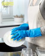 𝐍𝐨𝐧-𝐬𝐥𝐢𝐩 𝐆𝐫𝐢𝐩:Rubber gloves design of granules in the palm and fingers increases friction to ensure a better grip and control in dry and wet conditions. Kitchen Gloves for dishwashing fit hands well, pull-on closure sleeves are easy to take on and off.