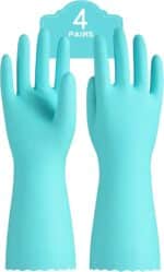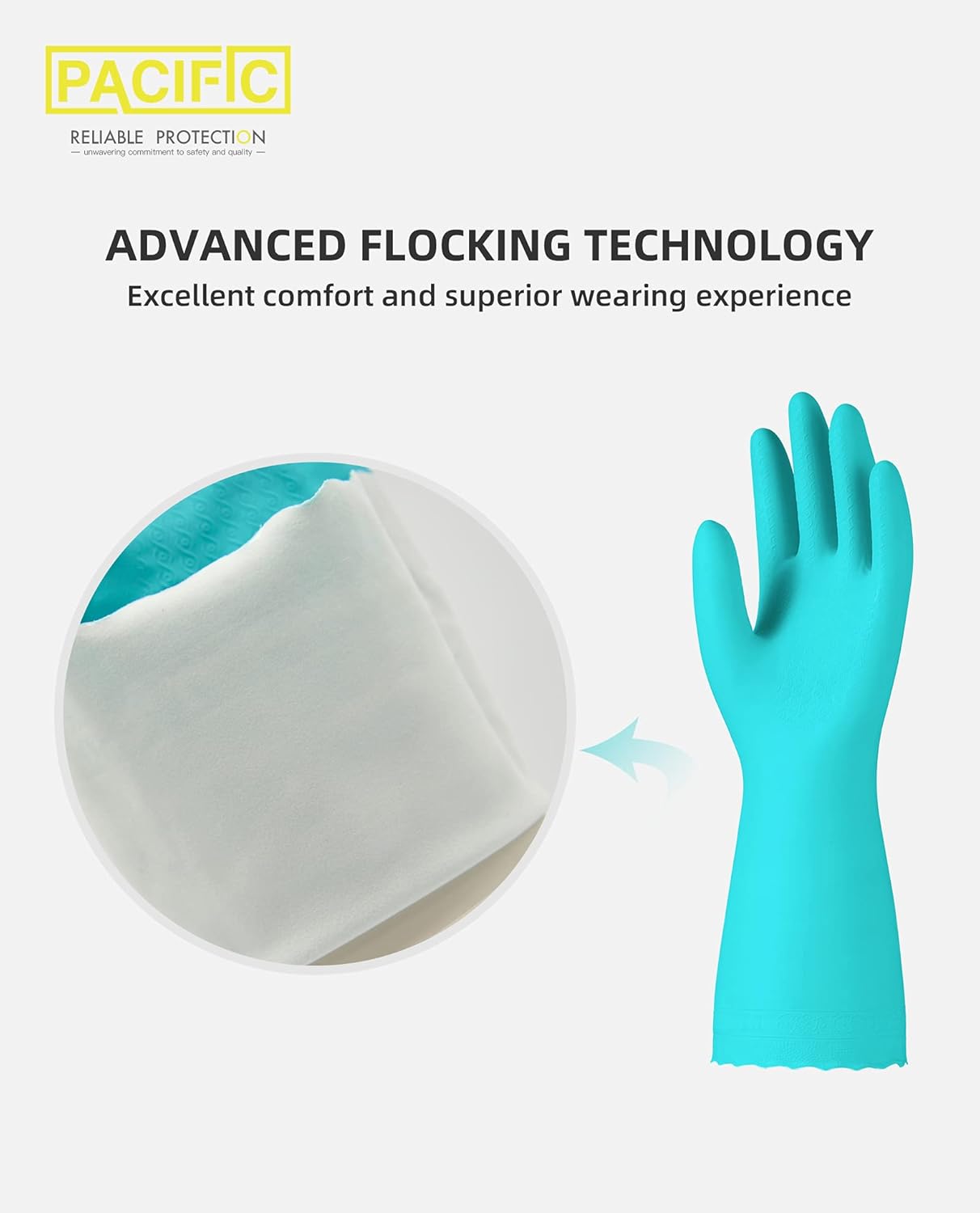 PACIFIC PPE 4 Pairs Reusable Dishwashing Cleaning Gloves with Latex Free, Cotton Lining, Kitchen Gloves, Green, Large