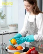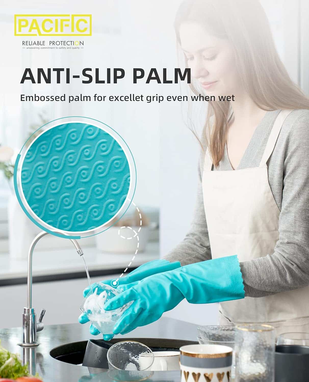 𝐍𝐨𝐧-𝐬𝐥𝐢𝐩 𝐃𝐞𝐬𝐢𝐠𝐧: Kitchen gloves design of granules in the palm and fingers increases friction to ensure a better grip and control. Rubber gloves fit hands well, pull-on closure sleeves are easy to take on and off.