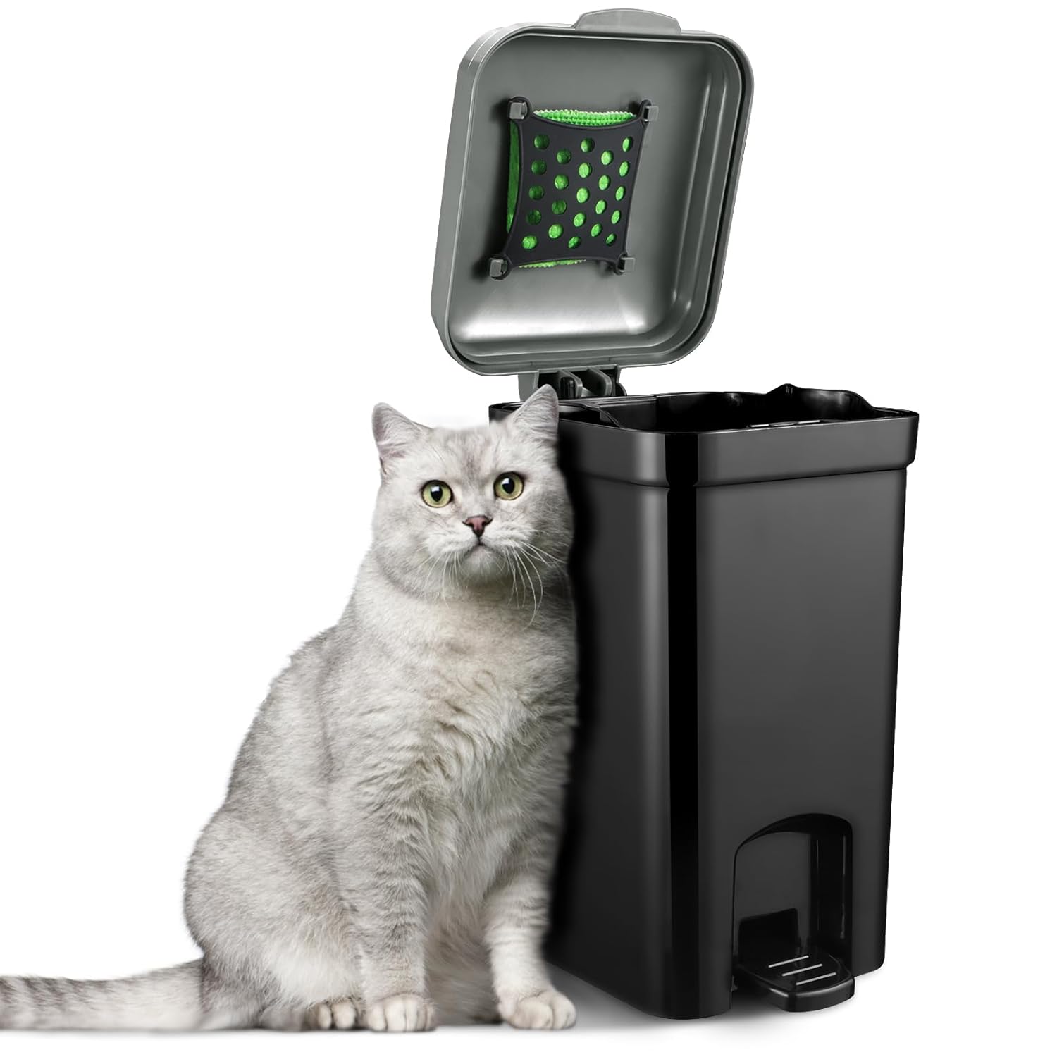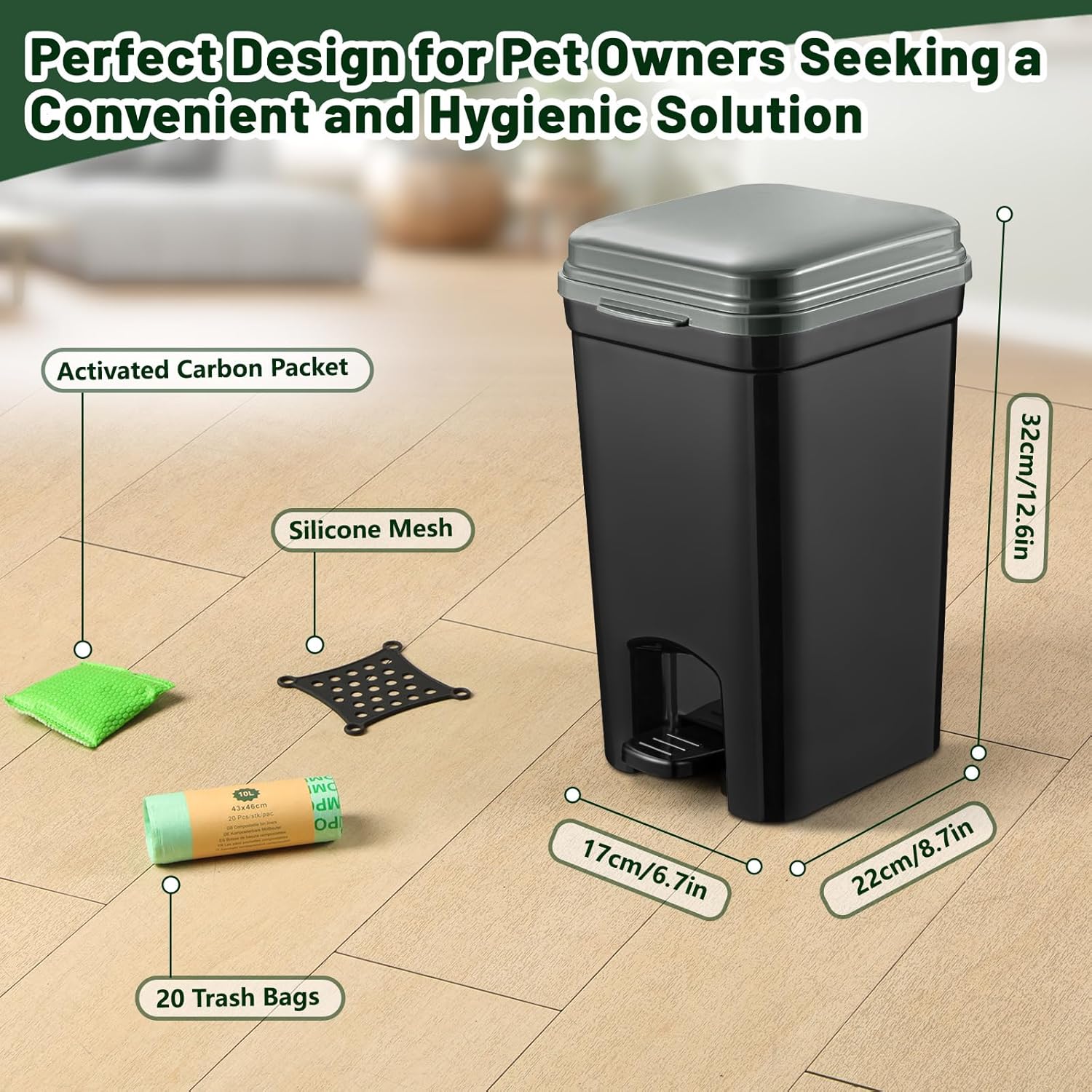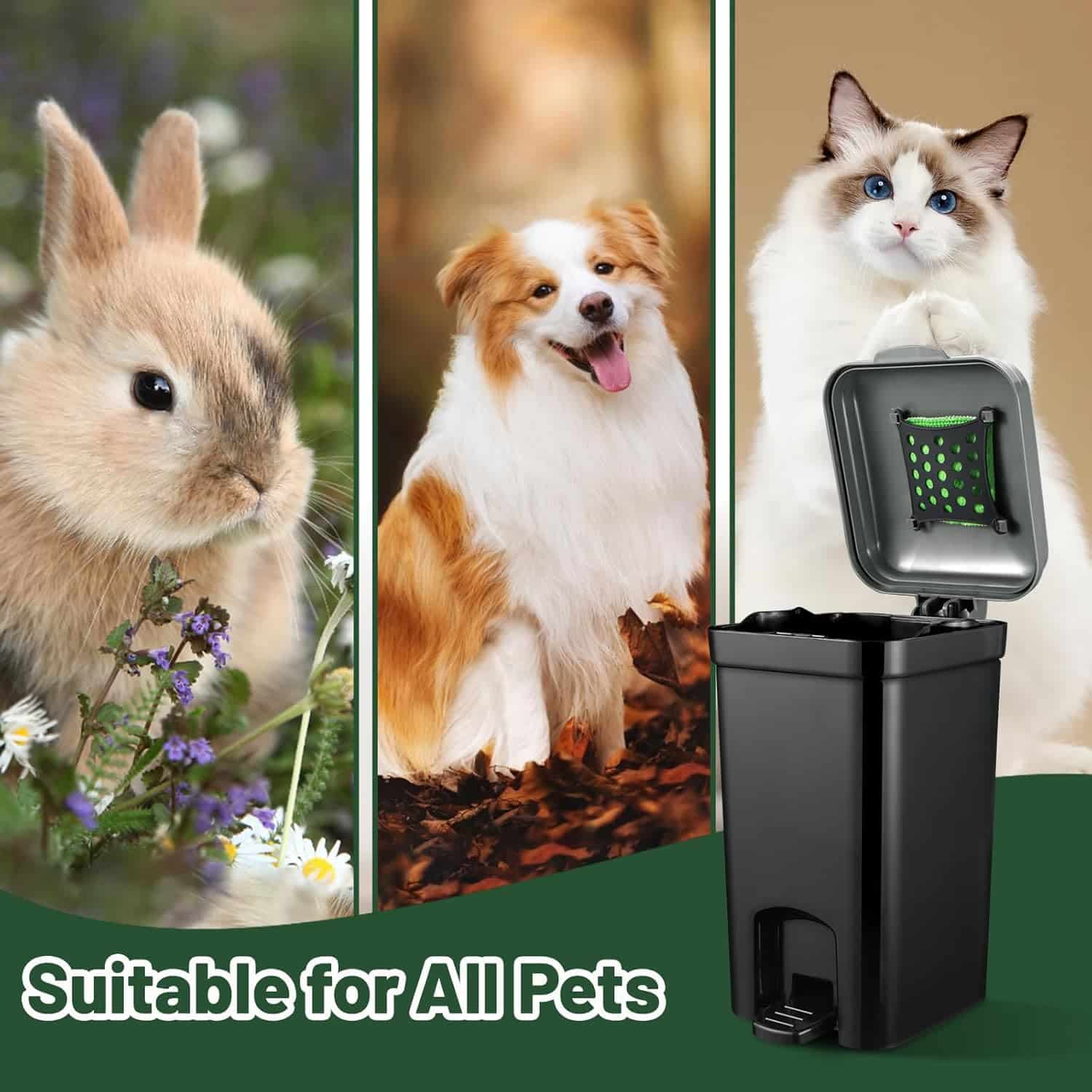 Pet Litter Trash Can for Outdoor & Indoor Dog Cat Waste Station with Lid Hands-Free Pedal 2.1 Gallon Inner Bin Home Kitchen with 20PCS Trash Bags & Activated Carbon Bag ABS-8L-GB