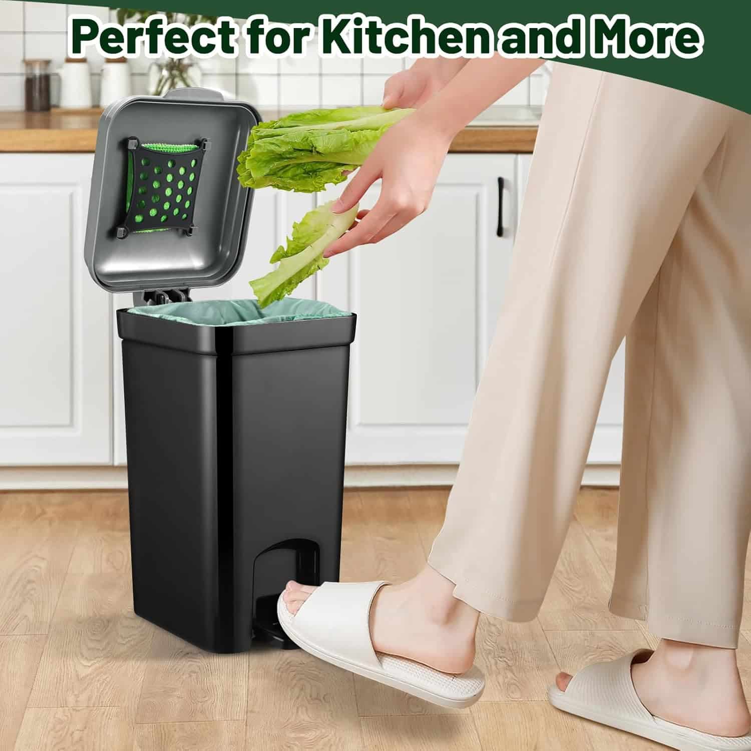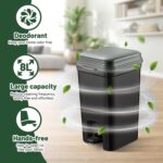HYGIENIC AND CONVENIENT: The hands-free, foot-pedal operated lid allows for easy and hygienic waste disposal. The lid’s airtight seal and integrated activated carbon compartment effectively contain odors, keeping your space fresh and clean. The removable inner bin with handles and bag-securing clips makes emptying and cleaning a breeze.