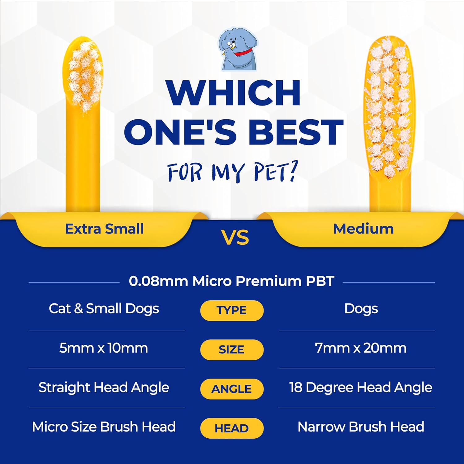 EXTRA SOFT BRISTLE: Crafted from microfiber PBT material, our 0.08mm diameter bristles expertly remove tartar and bad breath from your pet’s teeth, ensuring a comfortable brushing experience without irritating their gums.