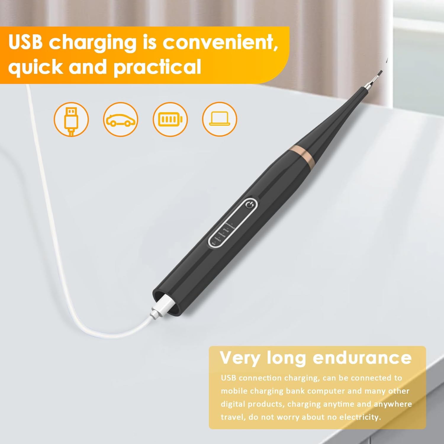 【Dog Toothbrush Kit】Our dog teeth cleaning kit include tooth scraper, 2 replaceable toothbrush heads, silicone dog finger toothbrush, USB charging cable. The dog tartar remover has IPX7 waterproof and can be washable after daily use. It takes 2-3 hours to be fully charged with the standard 5VDC USB power supply (5VDC/1A