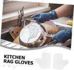 Reusable Dishwashing Gloves Thick Non Woven Cleaning Gloves for Household Use Kitchen Duster Mitts Durable Dust Wipes for Washing Dishes and Cleaning Surfaces White