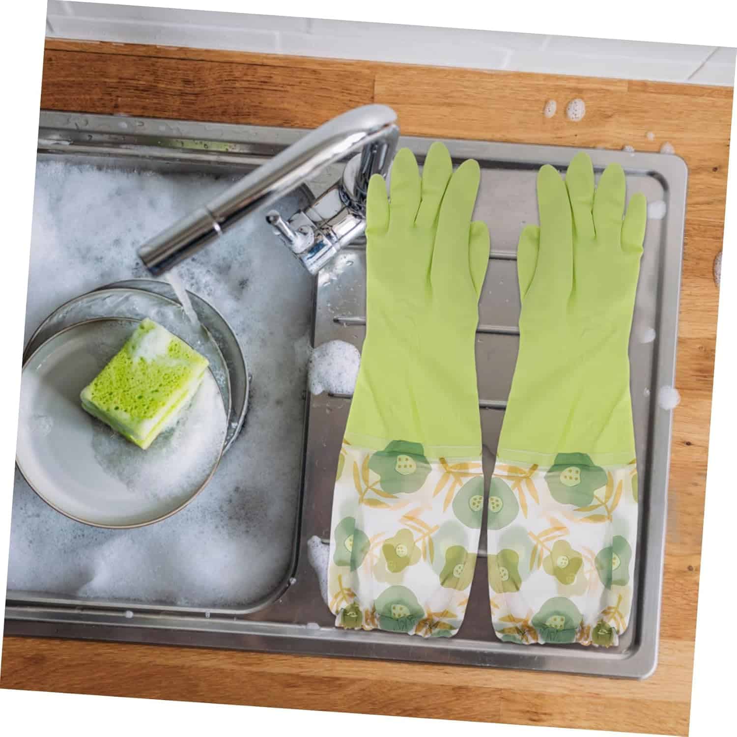 -Extra length: the extended length of the gloves provides additional protection for your wrists, preventing water and dirt from entering dishwashing gloves