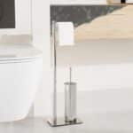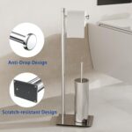 [304 Stainless Steel] This free standing toilet paper holder with toilet bowl brush and holder is made of high-quality heavy stainless steel material, durable and rust-proof