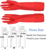 Multipurpose:Kitchen Cleaning,Dishwashing,Car wash,Indoor and outdoor cleaning,To prevent hand skin contact with corrosive liquids. Solid color gloves, lengthened cuffs,Make sure your hands and clothes are dry.Three sizes to meet the needs of different groups.