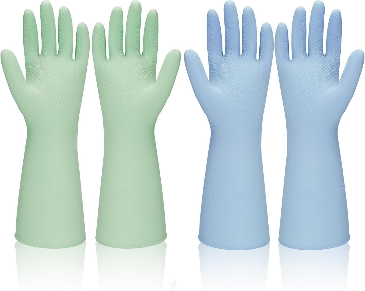Rubber Kitchen Dishwashing Gloves – 2 Pairs Reusable Household Cleaning Gloves, Flexible and Durable & Non-slip Cleaning Gloves, Great for Kitchen, Bathroom, Laundry (Medium, Blue+Green)