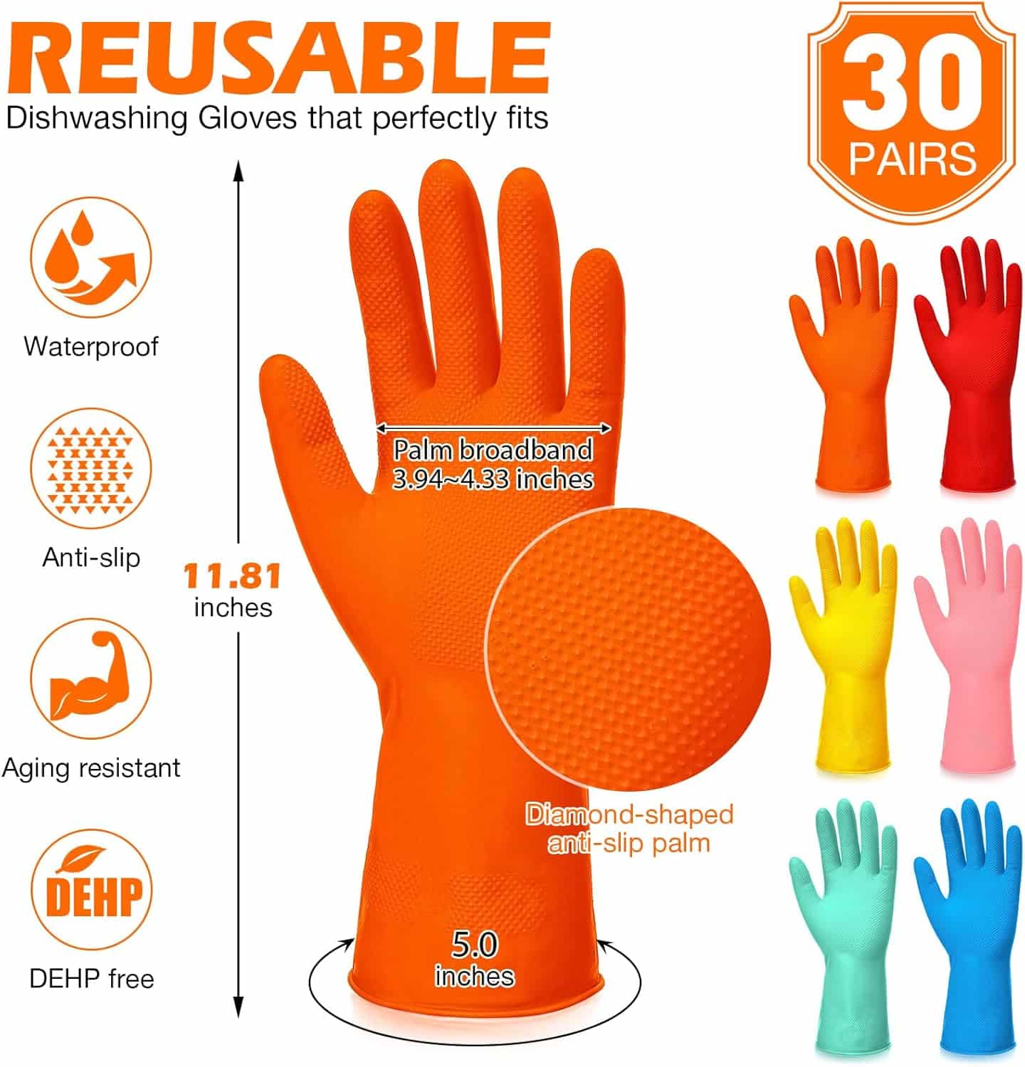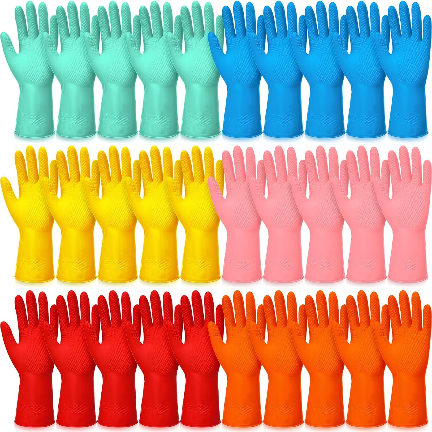 Sawysine 30 Pairs Rubber Gloves for Dishwashing Reusable Household Cleaning Gloves for Kitchen Washing Supplies