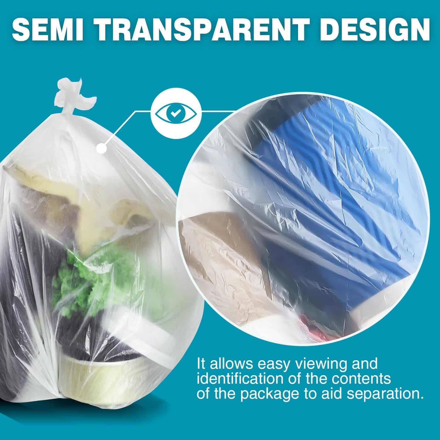 Translucent Design: This little trash bag is translucent. It allows easy viewing and identification of the contents of the package to aid separation.