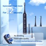 Sonic Electric Toothbrush – 180 Days on One Charge Durable Battery, 48000VPM Motor 5 Cleaning Modes 2 Min Timer 4 Quality Replacement Heads IPX8 Rechargeable Travel Power Tooth Brush for Adult Teen