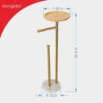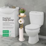 Freestanding Design Adds Elegance to Your Space. No need to drilling, no damage to your wall, easy assemble, the standing toilet paper roil holder with modern natural marble base and brushed gold metal rod can bring additional deco to your bathroom.