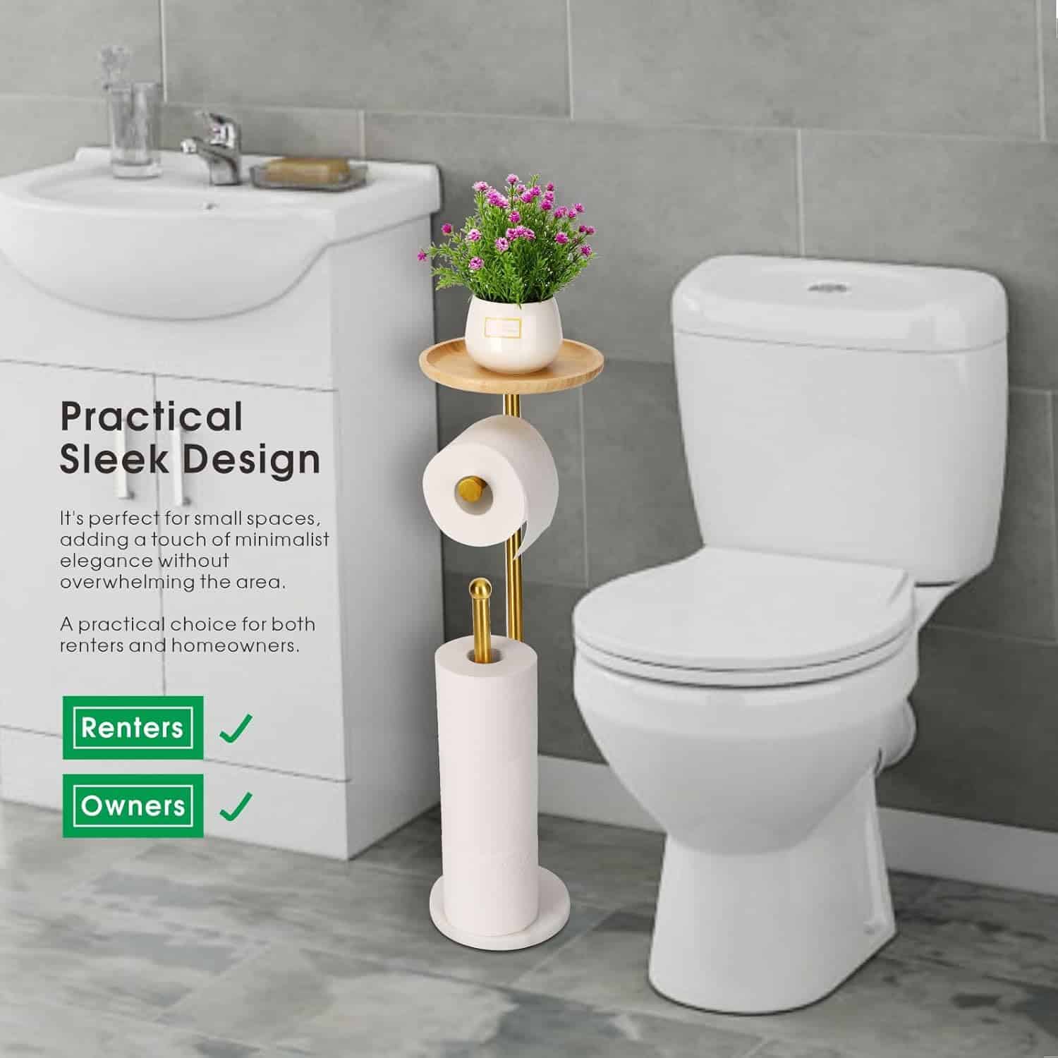 Humanized Height to Rip Paper – The toilet paper holder stand is 26.5inch in height, which makes you easy to get the toilet paper, provides easy access from all kinds of toilets.