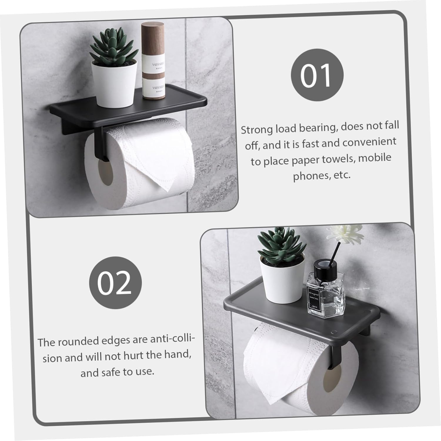 Toilet paper shelf:the rounded edges are anti-collision and will not hurt the hand, and safe to use,kitchen towel Dispenser