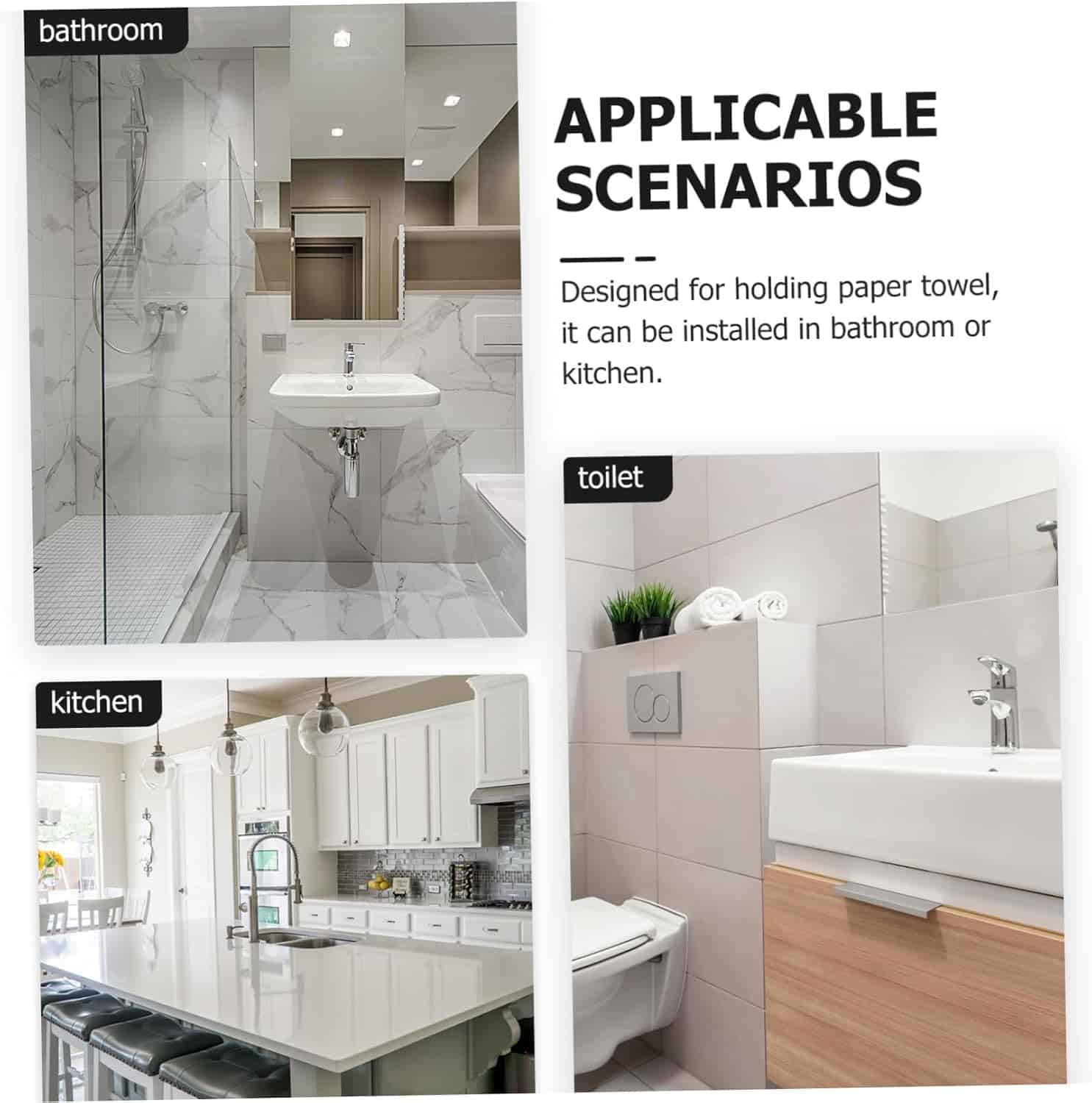 Paper towel hanger:two kinds of installation design, punching or without punching, comes with punching accessories, simple operation and convenient installation,kitchen accessory