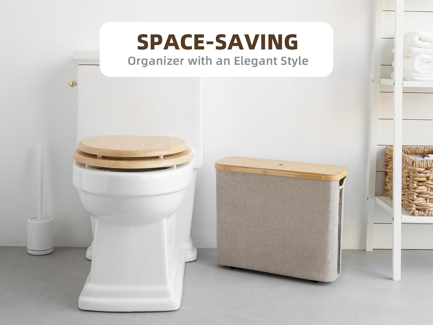 Large Storage Capacity: Measuring 17.5”L x 6”W x 13.75”H, this toilet paper storage basket can hold up to 12 regular size rolls or 9 mega rolls. This paper organizer is made of bamboo and natural fiber in a sleek appearance, providing a practical bathroom storage solution for you.