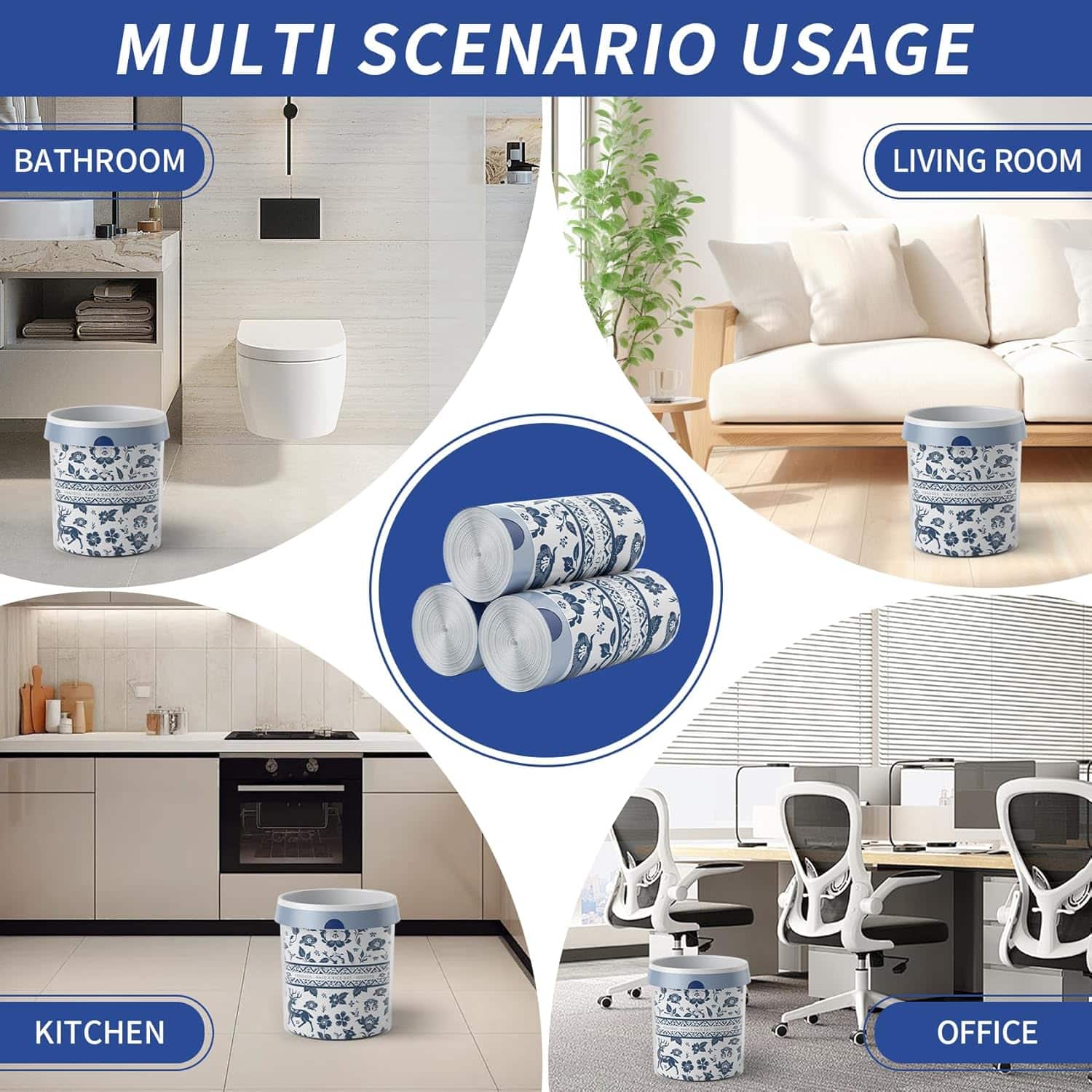【Appearance Design】: Our garbage bags are also printed with beautiful prints, which are designed with Eastern elements. They are beautiful and generous, giving people a visual freshness. Using our drawstring garbage bags, you can enjoy cleaner and easier handling
