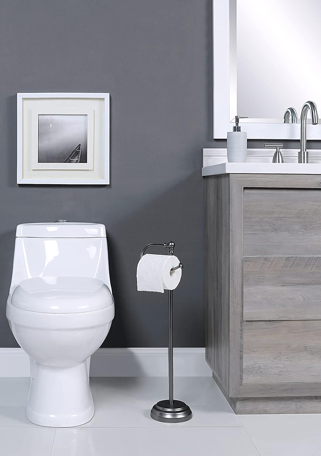 SunnyPoint Classic Bathroom Free Standing Toilet Tissue Paper Roll Holder Stand (Black Nickel)