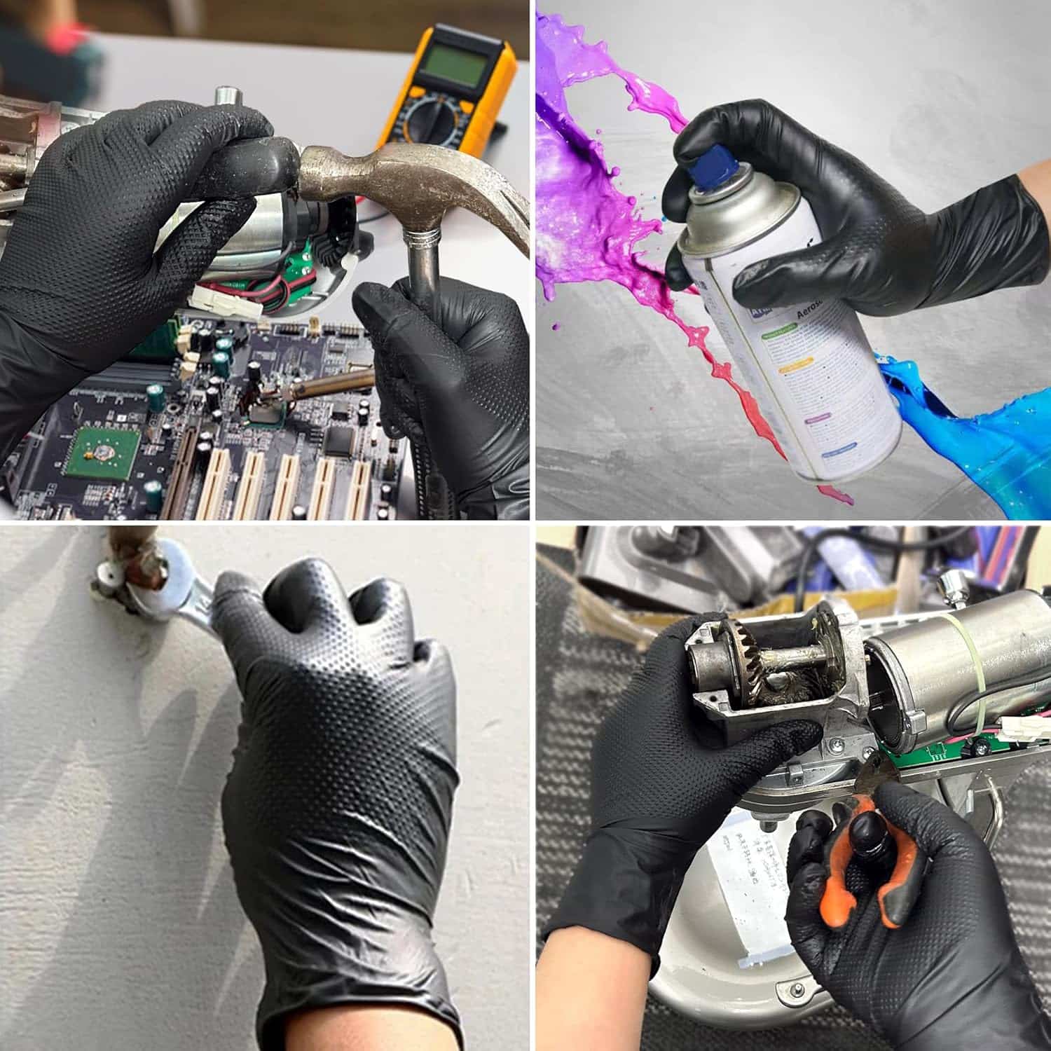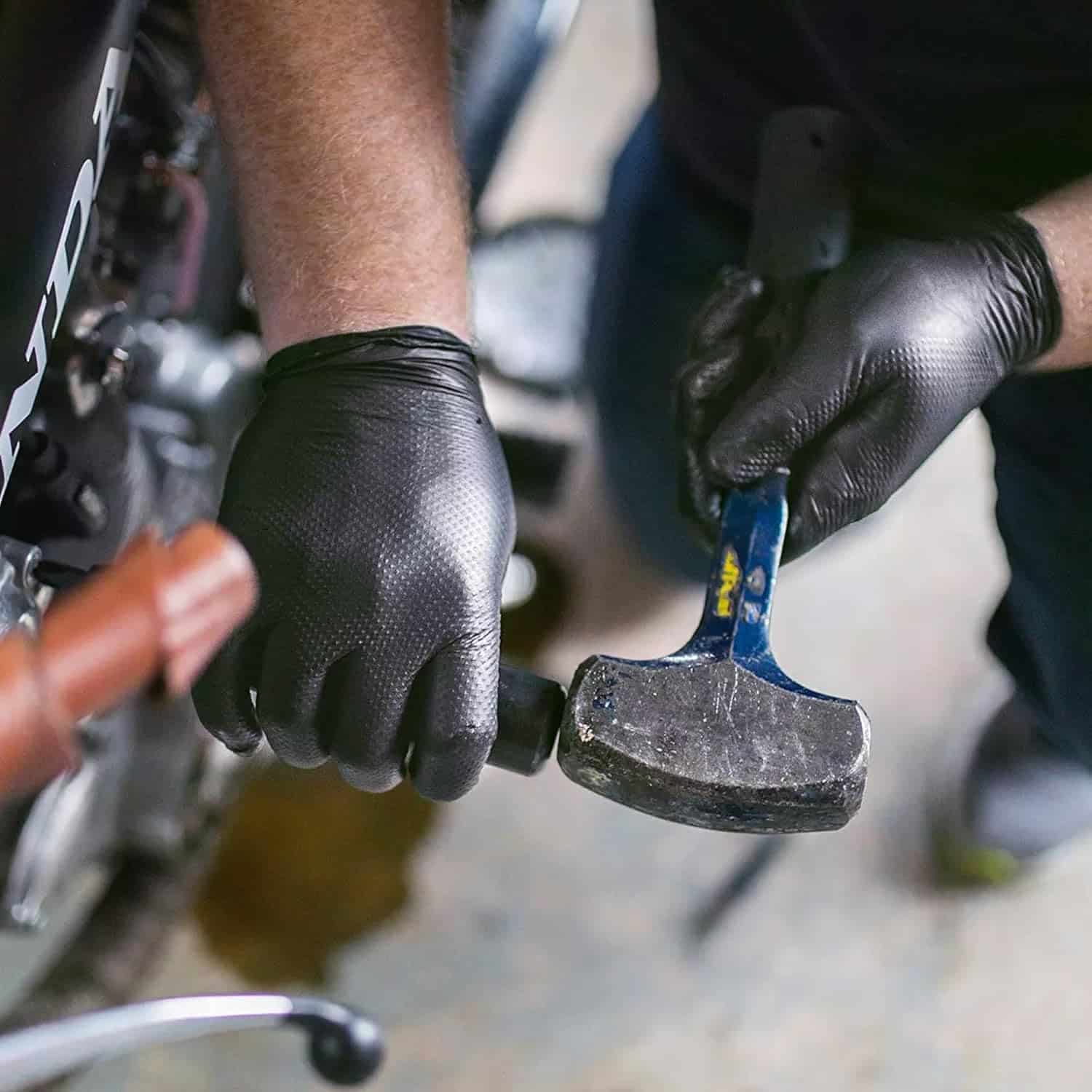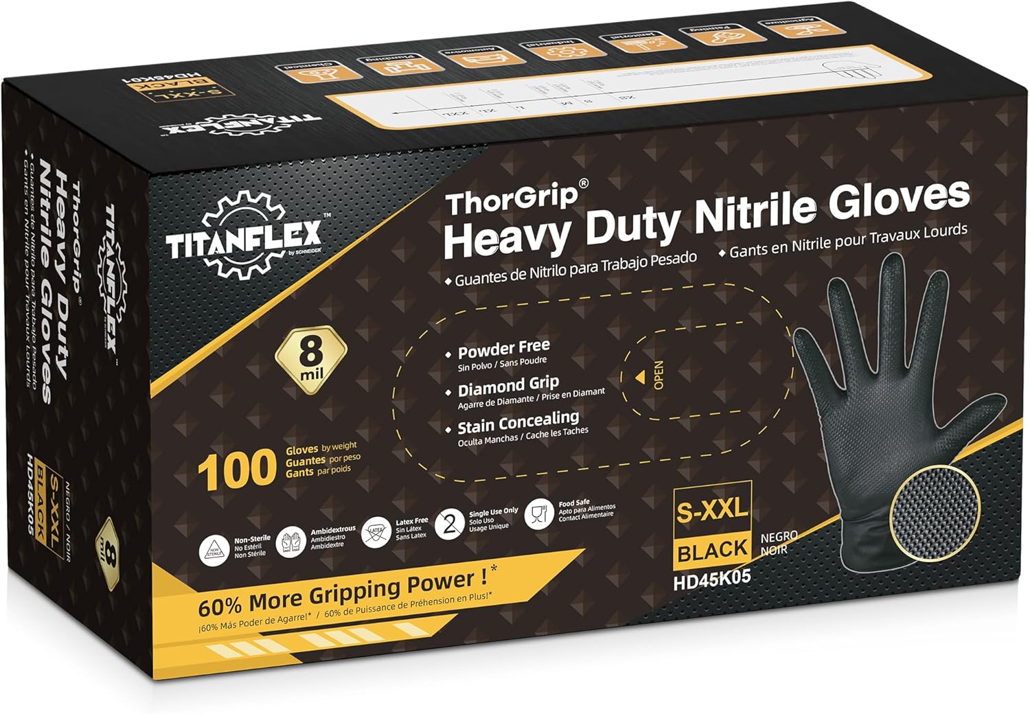 TitanFlex Thor Grip Heavy Duty Black Industrial Nitrile Gloves with Raised Diamond Texture, 8-mil, Latex Free