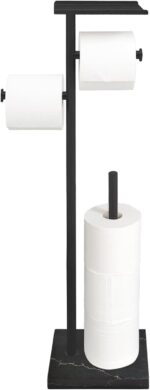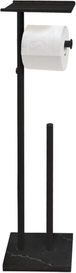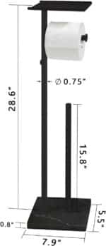 GZILA marble base free standing double toilet paper holder with shelf designed with modern and elegant marble base. And the rods made with premium 304 stainless steel. With the 15.75 inch hight reserve, very easy to storage 3 regular/ large mega rolls toilet paper. Upgraded version with an extra top stainless steel shelf is ideal for your cellphone, wipes or keys, etc. A Perfect Toilet Set For Daliy Use. Anti-slip pads are included in the package to apply on the base to keep the floor from scratching.