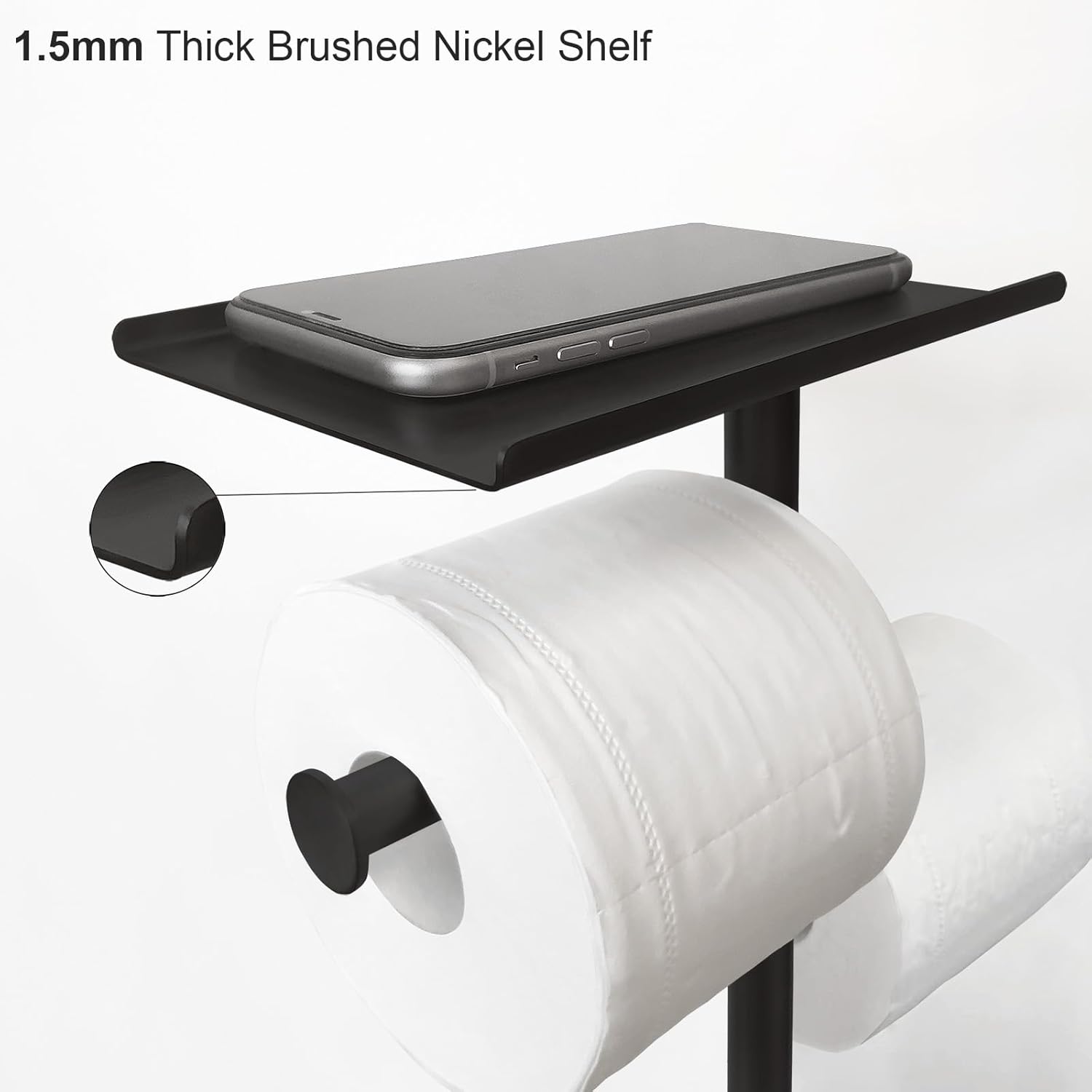 Thoughtful Design 1: Item designed to be Multi-functional free standing toilet paper holder with shelf, with 2 dispenser, a reserve rod. The top extra thicken shelf for your cell phone, wipes, keys, reed diffuser etc.