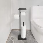 Premium Material: Constructed with 2cm thickness heavy base,19MM diameter SUS304 stainless steel rods and 1.5MM thickness SUS304 stainless steel storage shelf. A rustproof and sturdy construction toilet paper stand holder and storage set.