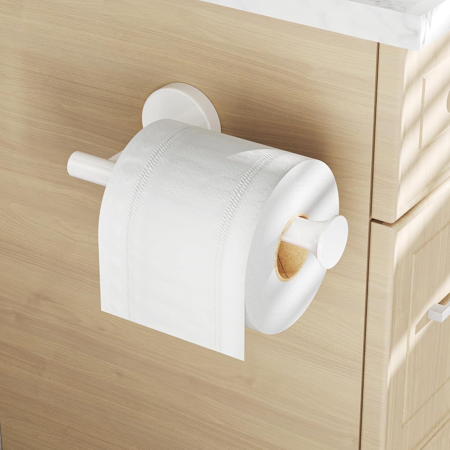 Toilet Paper Holder Wall Mount Bathroom Paper Roll Holder Tissue Handle Stainless Steel for Farmhouse Kitchen White