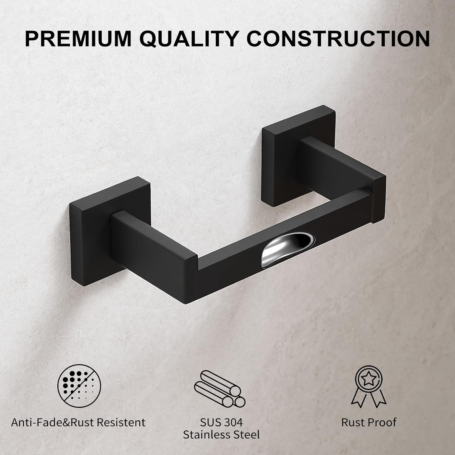 Durability and Rustproof: This wall mount toilet paper holder made of premium 304 stainless steel with matte black finish. The coating ensures resistance to daily scratches and scuffs. The high quality finish ensures long-term durability against rust and corrosion.