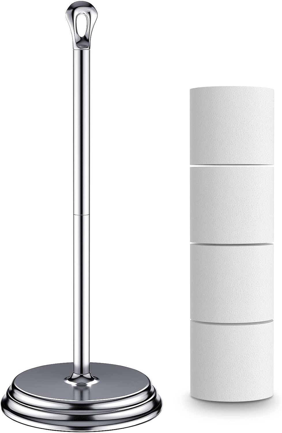 Toilet Paper Holder with Rustproof, Metal Free Standing Toilet Paper Stand Storage for Bathroom, Tissue Paper Roll Holder for Bathroom Accessories (Polished Chrome)
