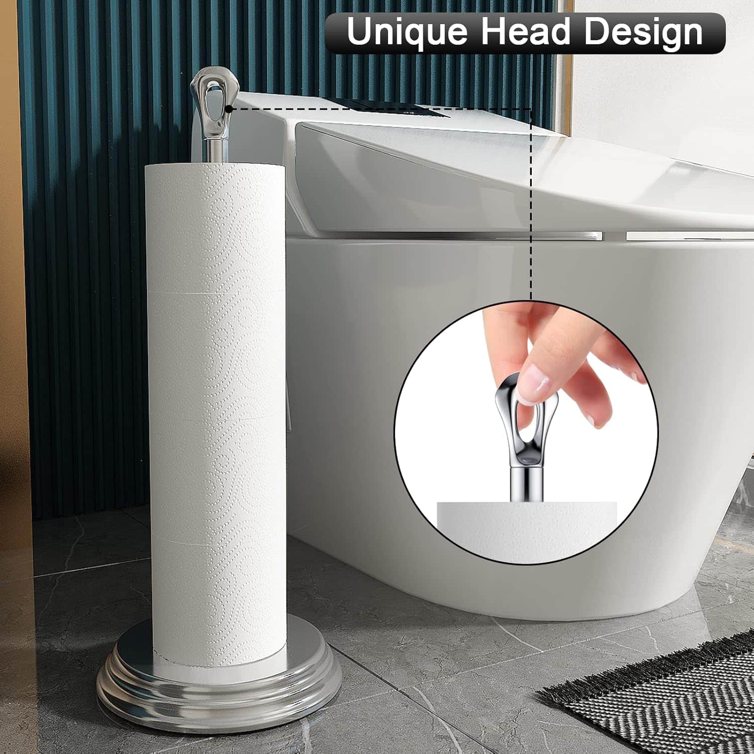 【Perfect Space Saver】With a base diameter of 7.2 inches, this holder takes up minimal space, fitting easily in small areas. Standing 22.2 inches tall, its free-standing design integrates perfectly into any bathroom space, giving you satisfaction when placed