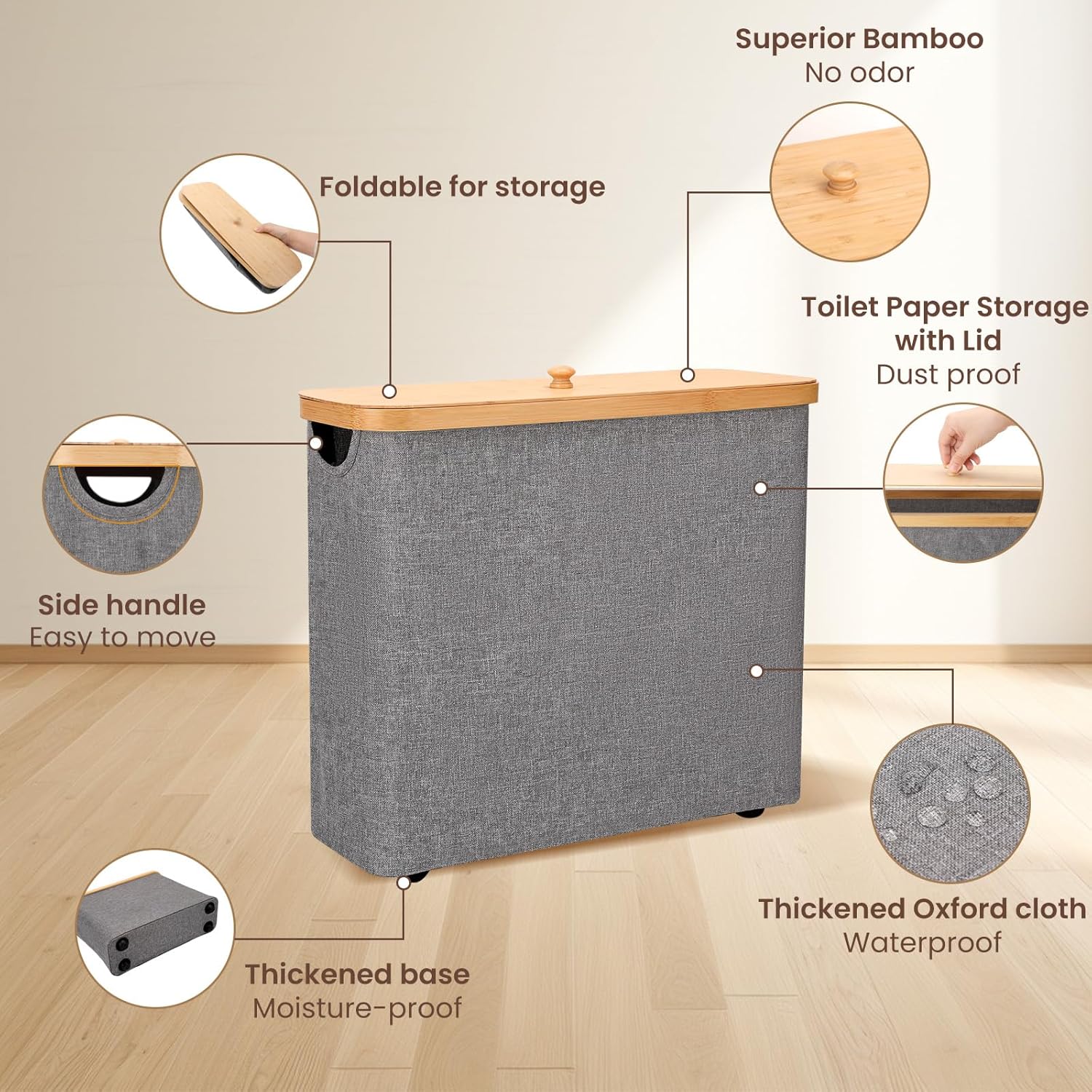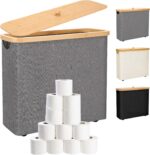 Toilet Paper Storage 30L – Waterproof Toilet Paper Basket with Bamboo Lid and Handle, Bathroom Toilet Paper Organizer (Gray)