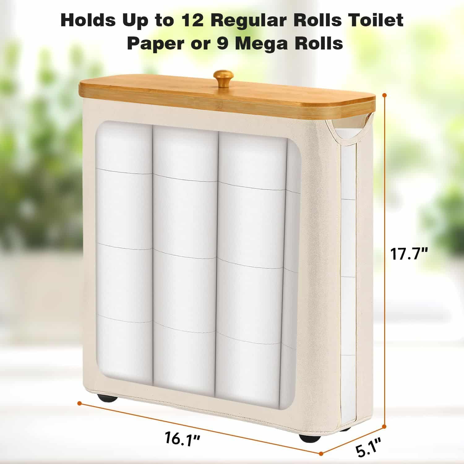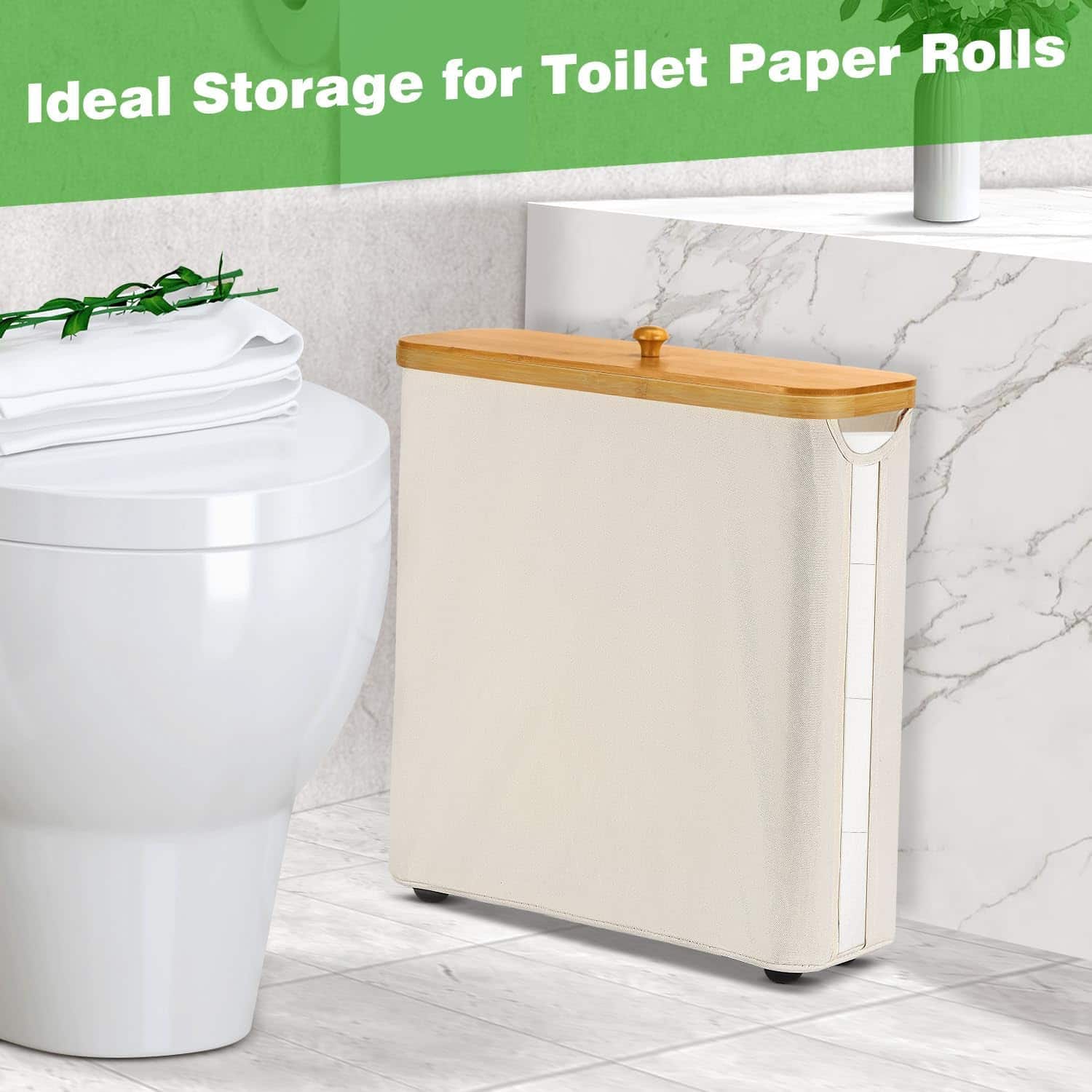 Bamboo Lid & Side Handles: Equipped with bamboo lid, add natural and eco-friendly touch, keep your extra rolls clean and dry. The handles on both sides make it easy and safe to move around for convenient use