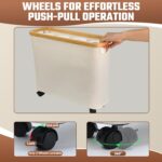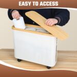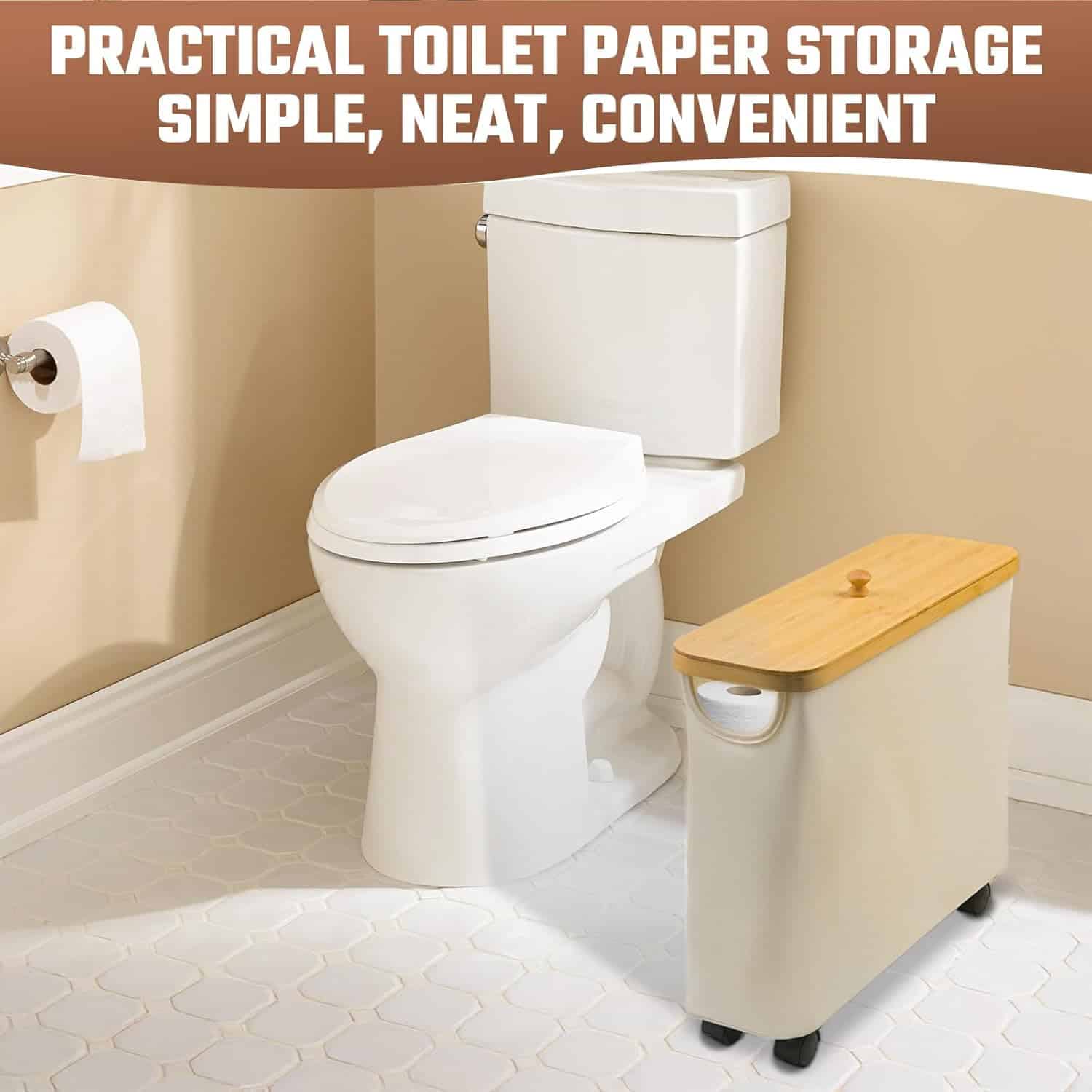 Toilet Paper Storage with Wheel Bamboo Toilet Paper Holder with Lid and Handle 23L Toilet Paper Organizer for Bathroom Free Standing Toilet Paper Basket for 9-12 Rolls Bathroom Accessories, Beige